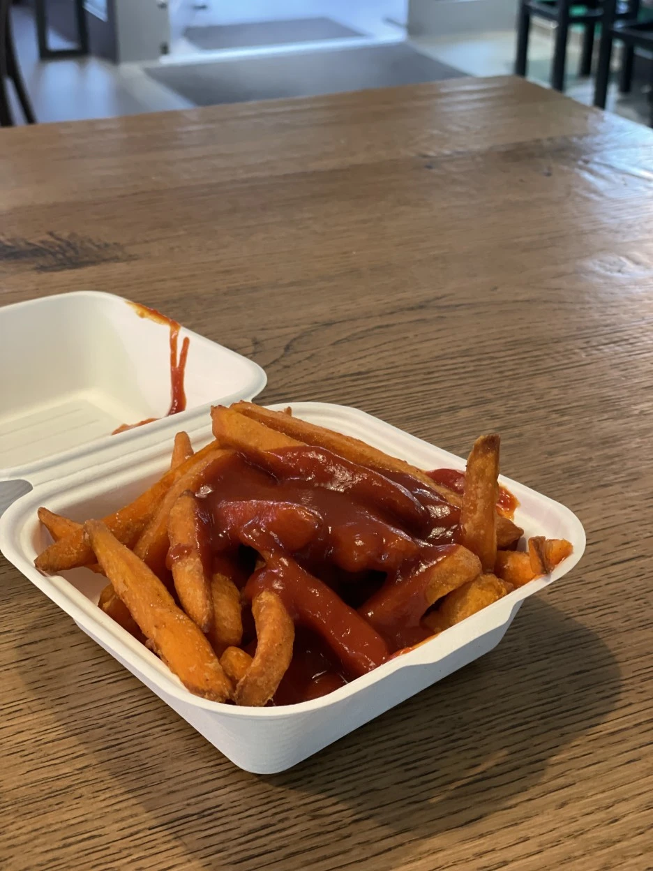 이제 그만... 정말 다리가 퉁퉁부어서 좀 앉아 쉬려고 들어간 감튀 전문점. 옵션에 케찹대신 커리 소스 옵션이 있어 좋았다. 심지어 감자튀김 대신 내가 좋아하는 고구마 튀김.