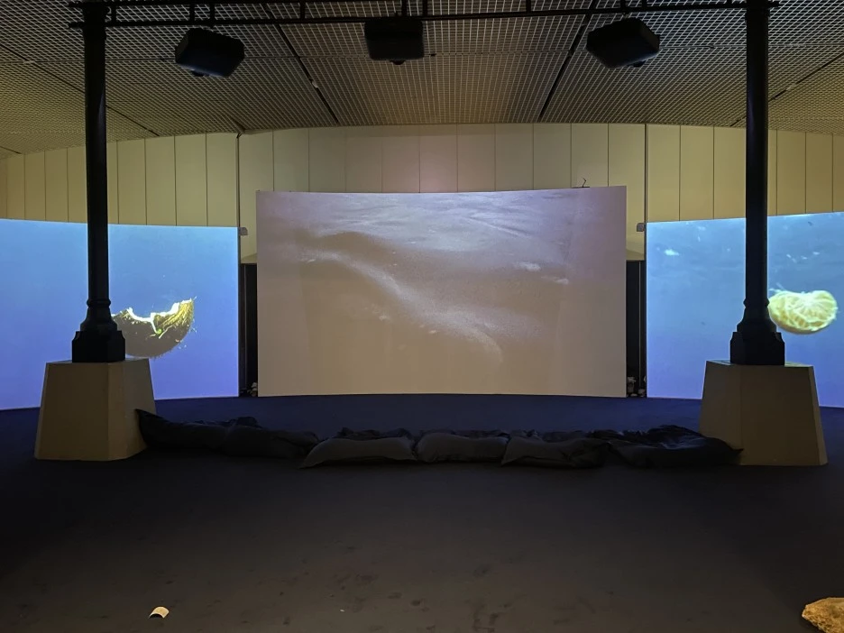 특히 좋았던 작품. 사람 가면을 쓰고 사람이 사라진 섬을 돌아다니는 원숭이의 하루를 담은 영상이었다. 그로테스크하고 씁쓸했다.
