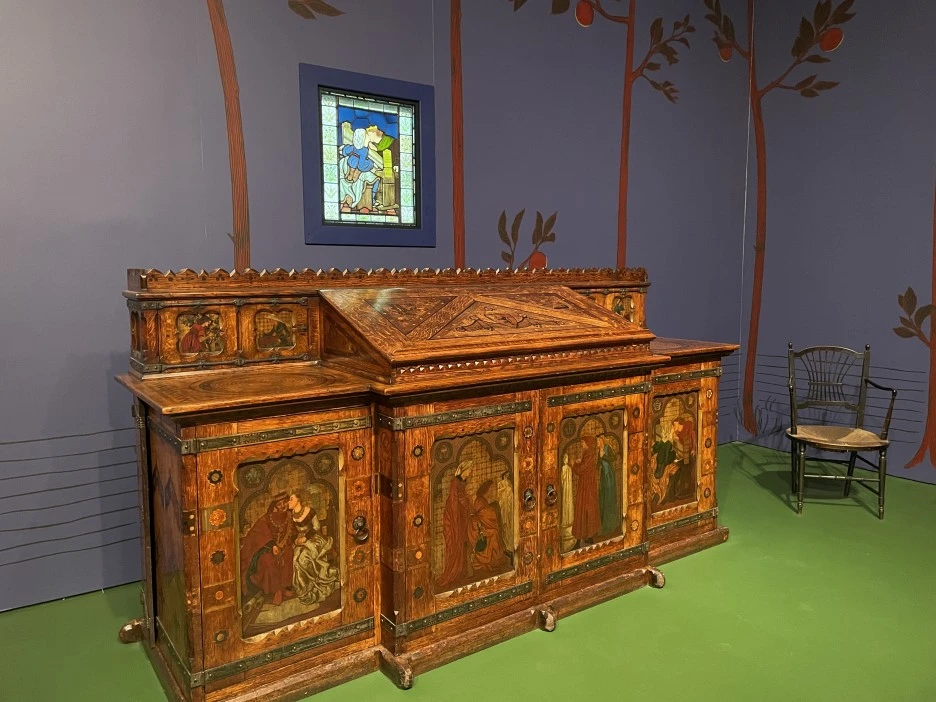 첫 번째 사진의 가구 안에 있던 문짝에 있는 그림도, 두 번째 스테인드글라스도 모두 세 번째 로세티의 그림에서 차용해서 다시 그린 것.