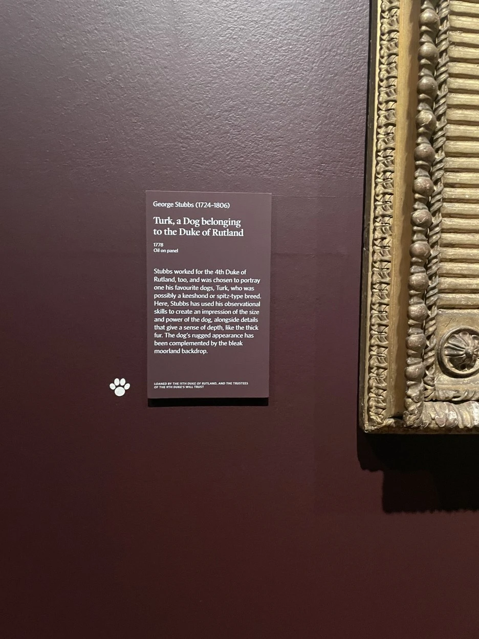 월리스 컬렉션에서 열렸던 강아지 초상화 전시. 오디오 가이드 설명이 있는 작품은 강아지 발바닥으로 표시해둔 센스.