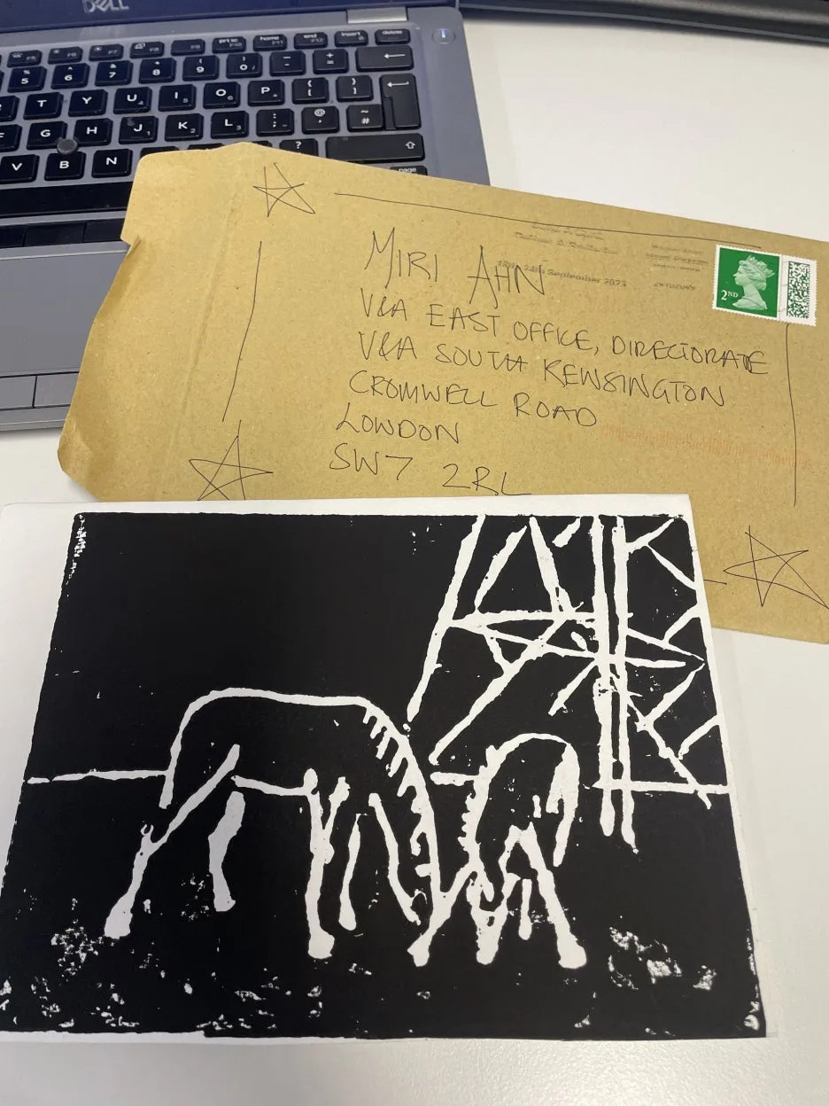 육아휴직을 보내고 있던 전 상사에게서 편지가 도착했다. 본인이 직접 그린 판화로 찍어 만든 편지지라 더 사랑스럽.