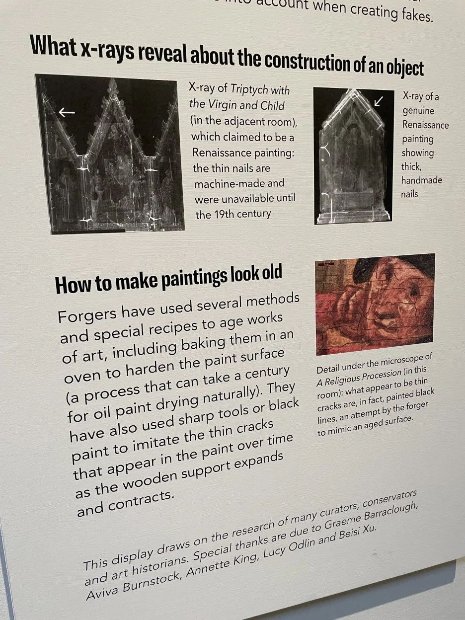 X-Ray 스캔이 어떻게 진품인 지 알아내는 데 기여하는지. 작품을 오래된 것처럼 보이게 하는 트릭 등에 대한 글.