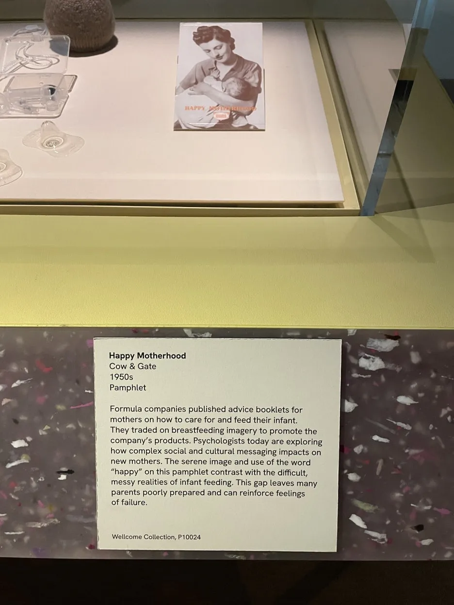 Happy Motherhood라는 문구로 여성에게 역할을 강조하고 모유 수유 과정을 행복함으로 점철시켜버리는 책. 오늘날 심리학자들은 이러한 메시지들이 엄마들에 어떤 사회적이고 문화적인 영향력을 행사하는지 연구한다. 현실 속 모유 수유의 과정은 지저분하고 힘든 과정이기 때문. 이를 그냥 페미니즘으로 엮어도 되는데 텍스트는, 이러한 현실에 대한 괴리감이 부모 모두에게 아이를 낳았을 때 실제로 덜 준비된 상태가 되게끔 만들고, 모유 수유를 하며 맞닿는 예기치 못한 어려움들로 실패의 기분을 느끼게끔 한다고 한다고 확장시켰다.