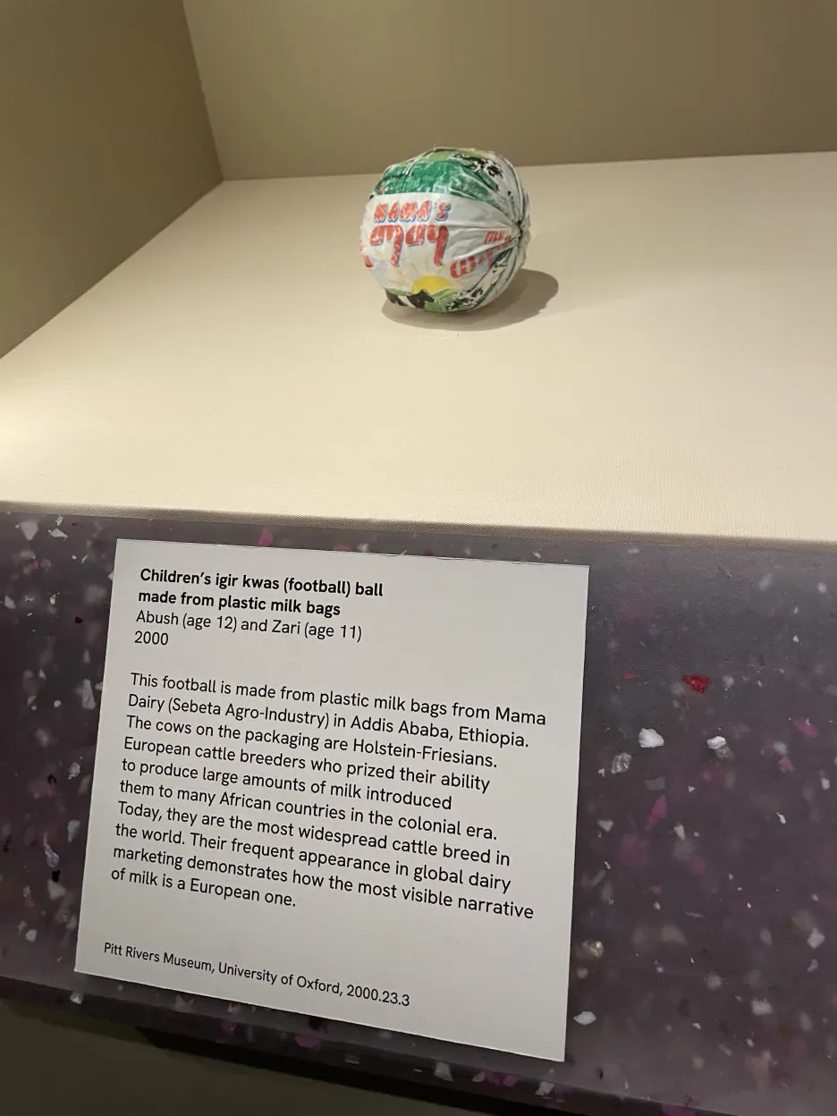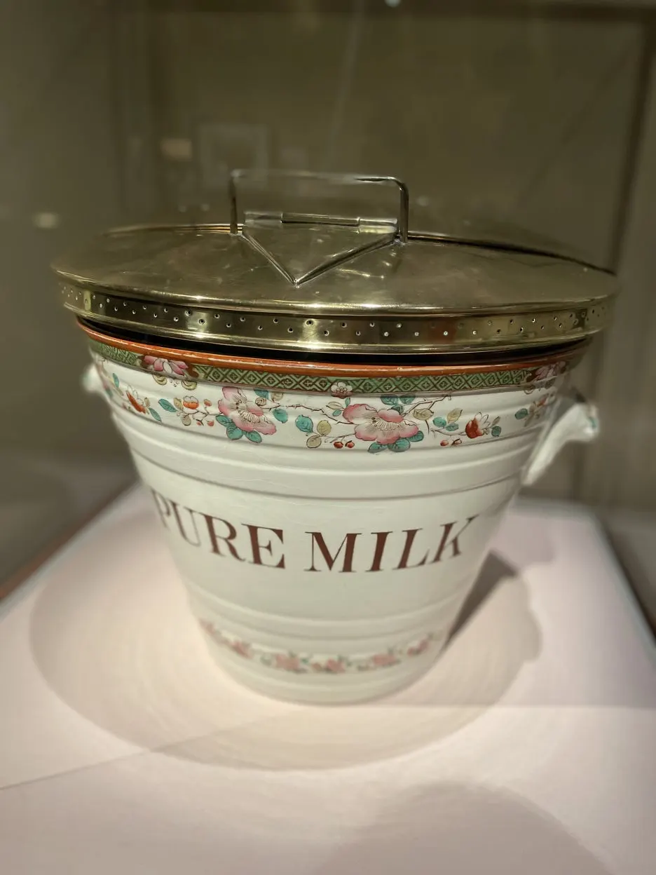 그 와중에 전시 케이스는 재활용 플라스틱을 활용했다. 그리고 2번째 사진에 1903년도의 Bacteriology of Milk, 또 그 옆의 너무 재밌었고 몰랐던 우유의 색에 대한 이야기. 19세기에는 봄에 풀을 먹은 소에서 나오는 우유의 농도와 색이 겨울보다 더 진했다고 한다. 따라서 Annatto라는 회사는 식물에서 나온 색을 우유에 넣어 일 년 내내 크림 색을 유지하도록 했다. 현재는 균질화 과정을 통해 이런 인공적인 과정 없이도 우유가 균등히 유지된다고 한다. 한편 치즈 회사는 여전히 이 아나토의 상품으로 노랗거나 주황, 또는 빨간색의 치즈를 생산한다고 한다.