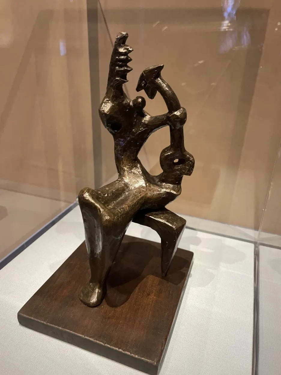 헨리 무어의 작품으로 현대 조각까지 가져왔다. 이를 통해 이전의 조각들이 엄마와 아들을 조화스럽고 아름다운 모성애 이미지로 그려왔다면, 무어는 이런 모성애에 대한 기존 관념에 도전한다는 걸 보여준다.작품을 보면, 아이는 엄마의 가슴을 잡아 삼키려 하고 있고 이런 모자간의 힘겨루기 과정이 묘사되어 있다.