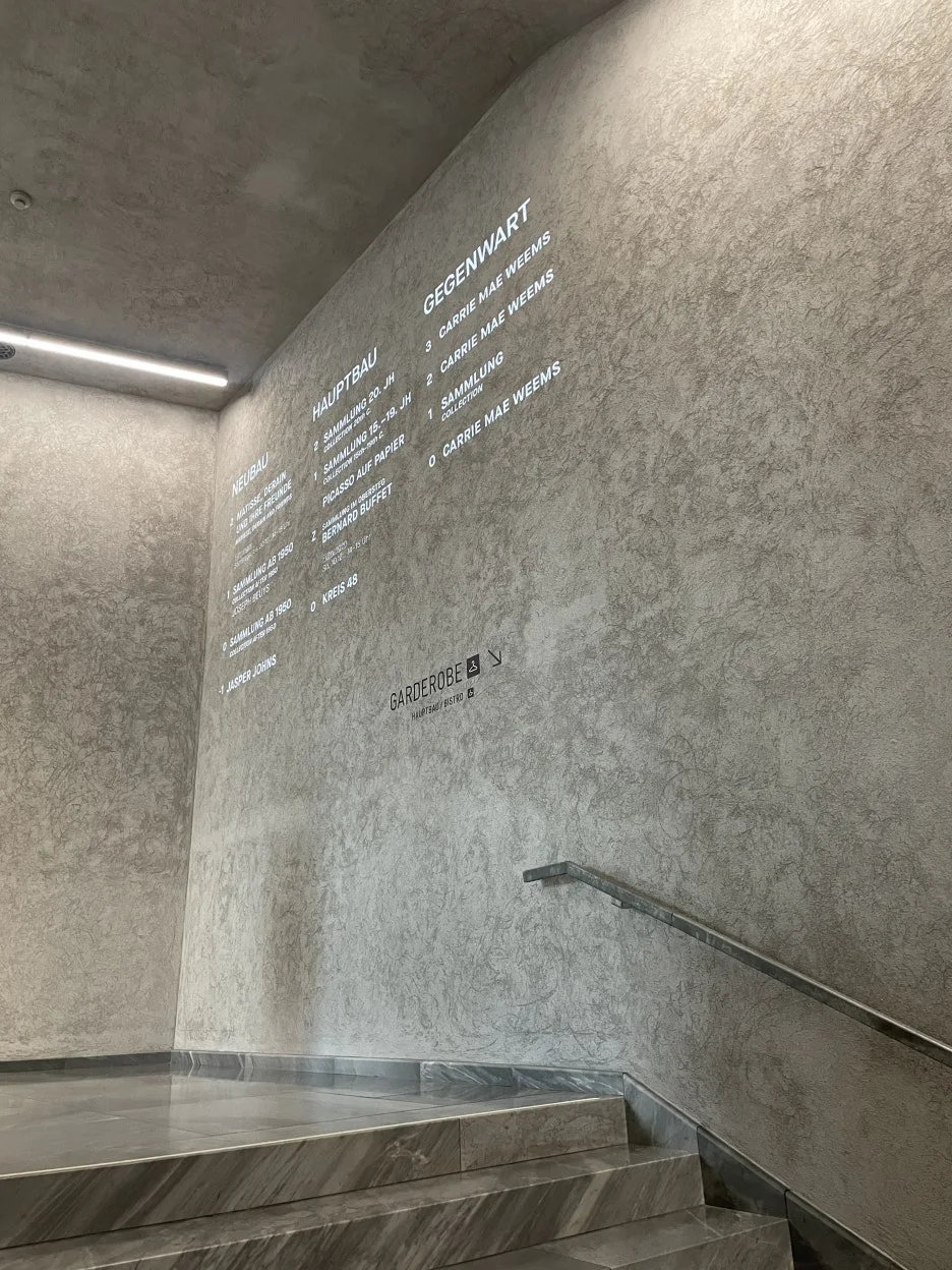 Wayfinding 은 프로젝터로 했다. 건물 미감이랑 어울리기도 하고 전시가 자주 바뀌는 경우 효율적인 선택.