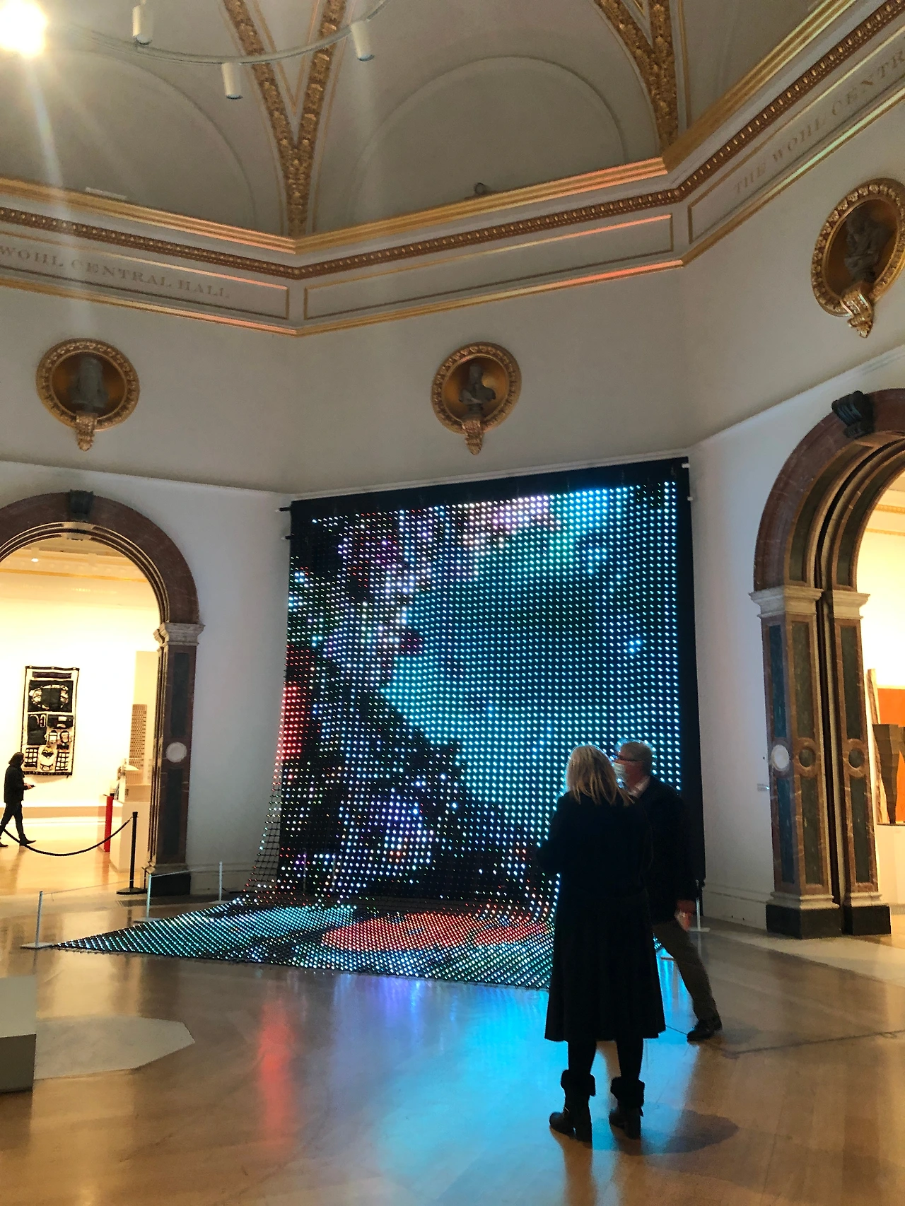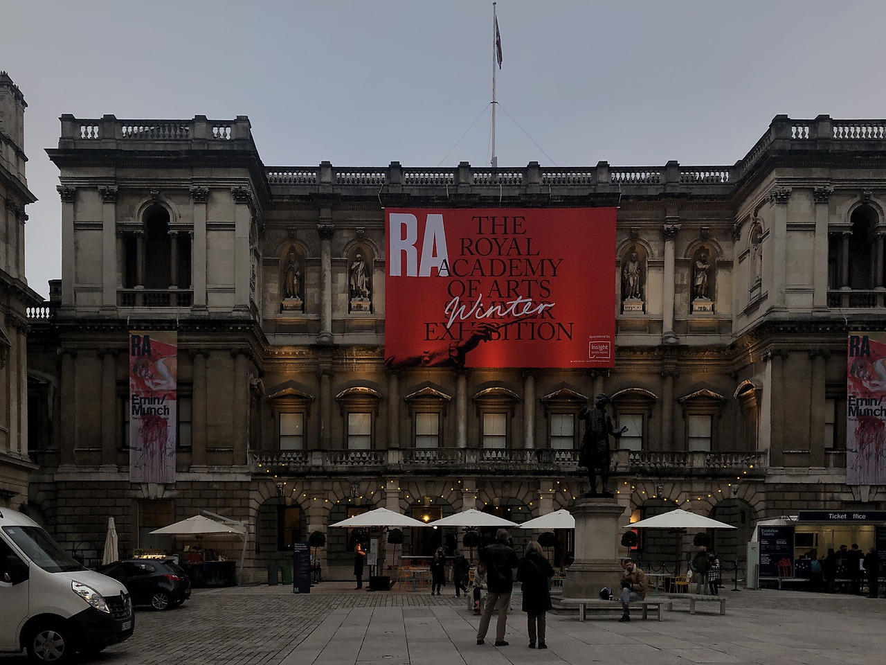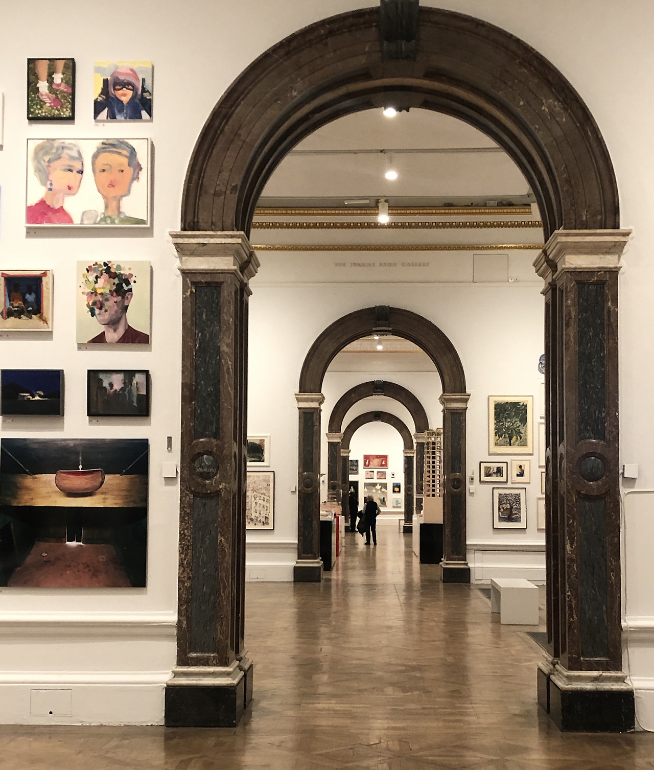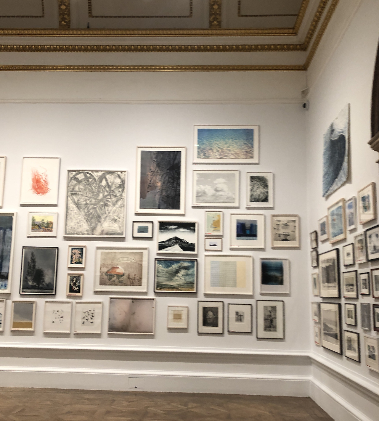 작품이 다닥다닥 너무 많은 살롱식 전시인데 비디오까지 몇 점 있어 시간이 많이 걸렸다. 게다가 캡션이 따로 없고 그림 옆의 번호가 다라 브로셔 안에서 이 번호를 찾아가며 번갈아 보느라 손과 눈이 바빴다. 흥미로운 건 몇몇 명망 있는 작가는 이름 옆에 수여된 훈장 이름 (Knight/Dame Grand Cross (GBE) · Knight/Dame Commander (KBE/DBE) · Commander (CBE) · Officer (OBE) · Member (MBE)) 이 알파벳 약자로 적혀있으며, RA(로열 아티스트)인 작가는 RA라고 빠짐없이 명기되어 있었다는 점들. 영국스럽다는 생각이 들었다. 특히 장소가 왕립 아카데미라 더 그랬던 것 같다.