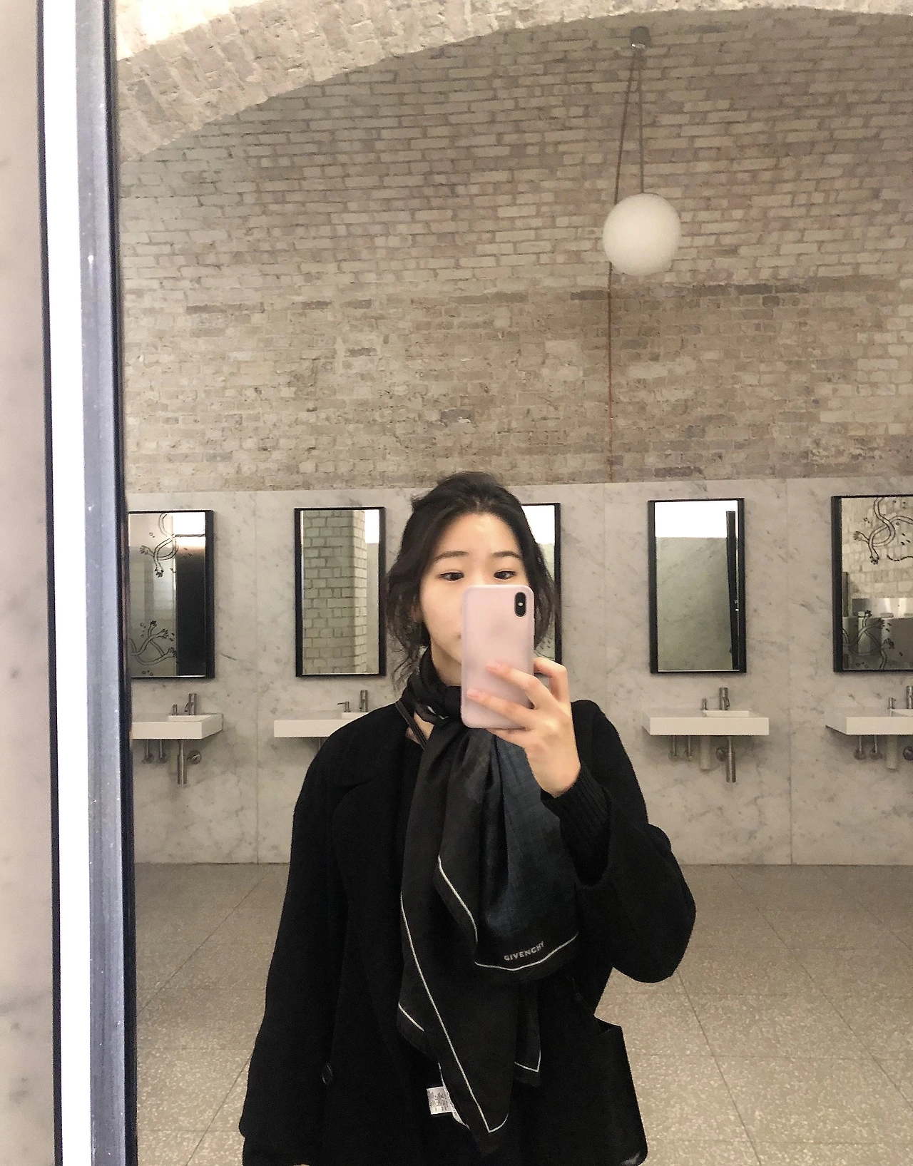 기념품샵에서 마음에 들었단 작품의 엽서를 사고 나오는 길엔 트리도 발견하고 화장실에서 셀카도 찍었다.