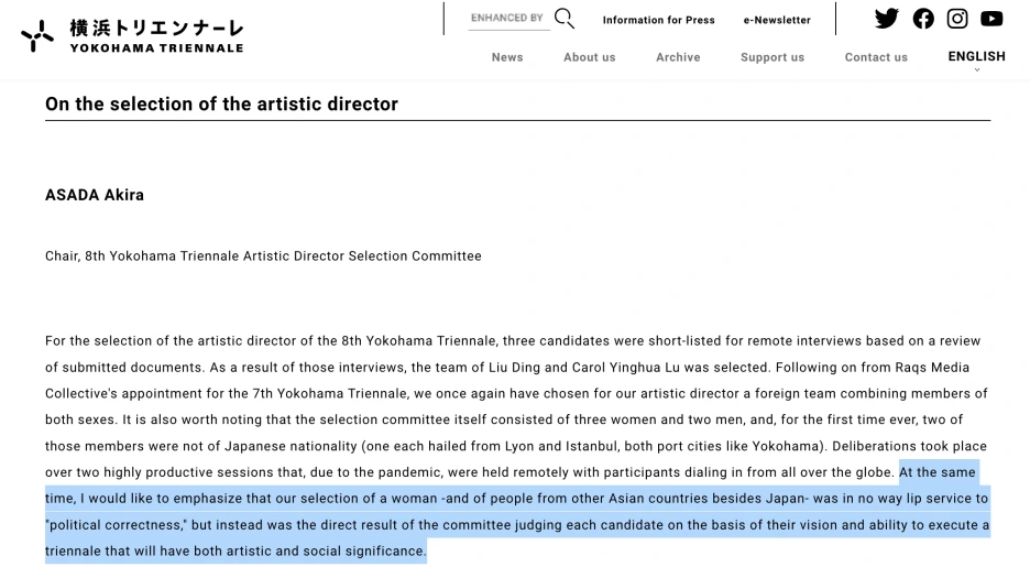 여하튼 그래서 알아보고 있던 요코하마 트리엔날레. 사실 일본의 현대미술 시장은 죽고 있다. 한국이나 중국이 훨씬 잘하는데 나는 오히려 죽은 이유가 궁금했다. 개성 강하고 장인 우대 높은, 게다가 여전히 경제적으로 그래도 발전되어 있는 일본에서 왜 미술 시장과 작가들, 그리고 큐레토리얼 신이 확 죽었을까.