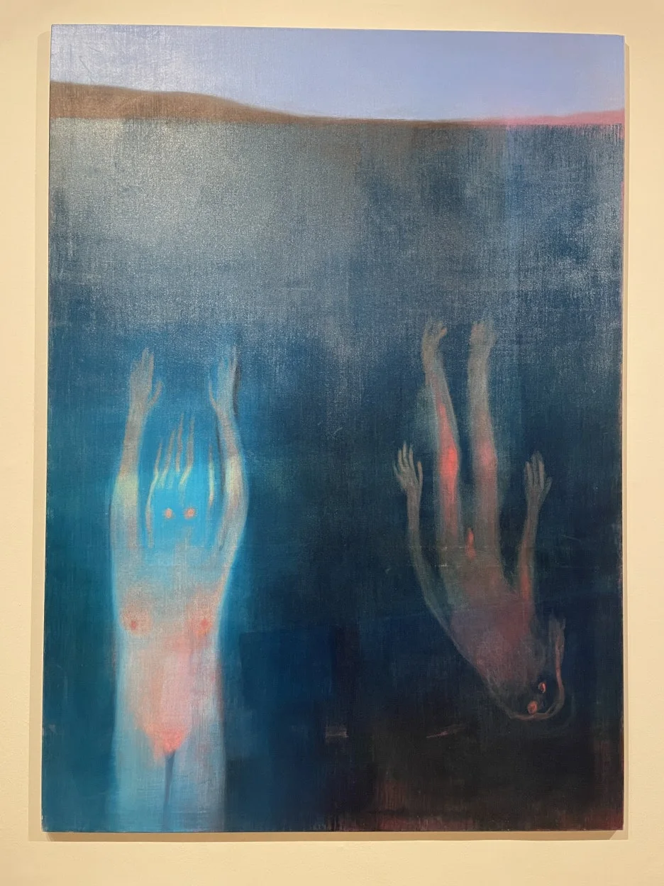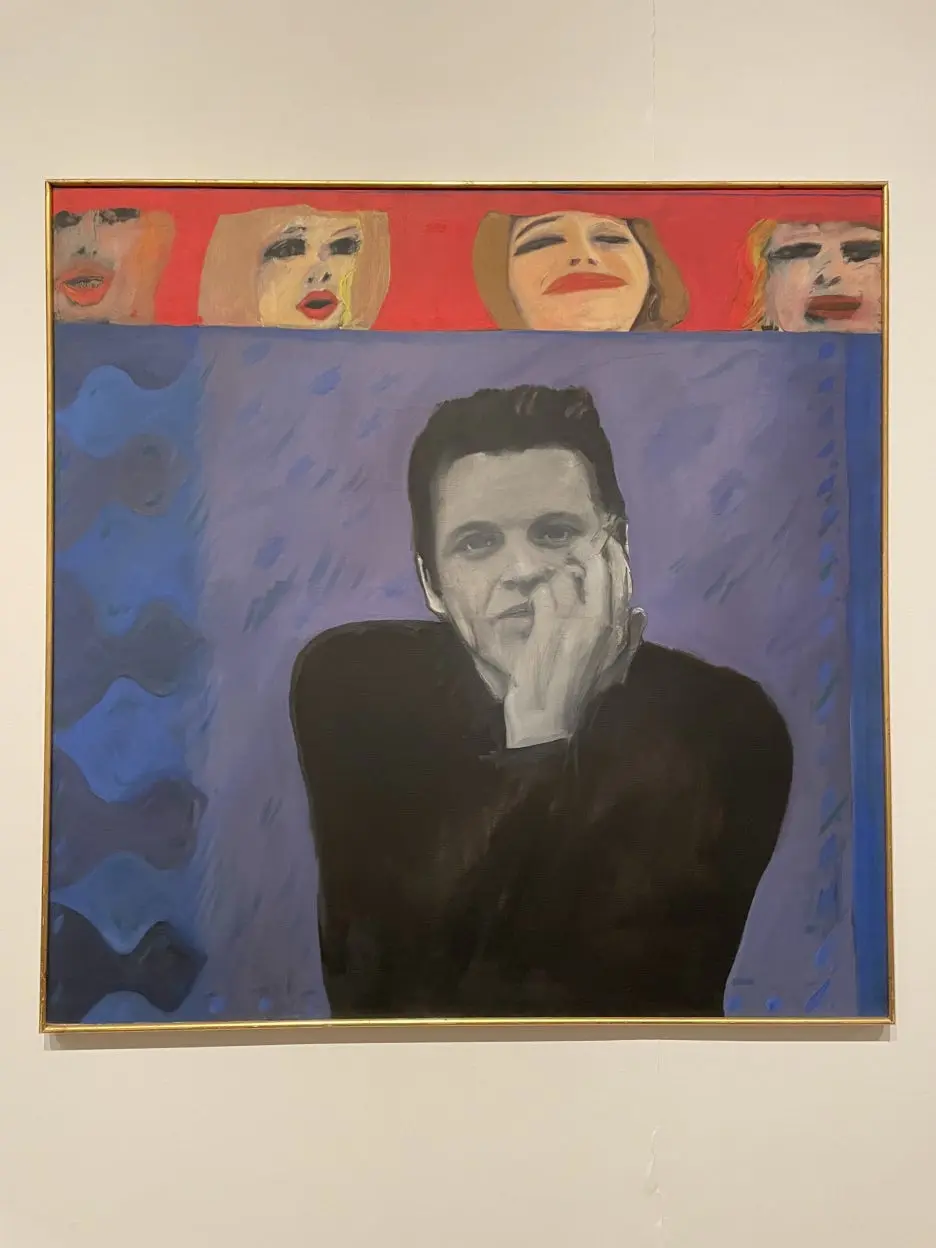 포울린 보티. 미디어에 다른 성들이 어떻게 표상되는 지 보여주려한 그림. 지적이고 쿨한 포즈의 영국인 작가이자 화가인 데렉 말로위의 초상과 대비되는 흐릿한 무명의 여성 얼굴들.