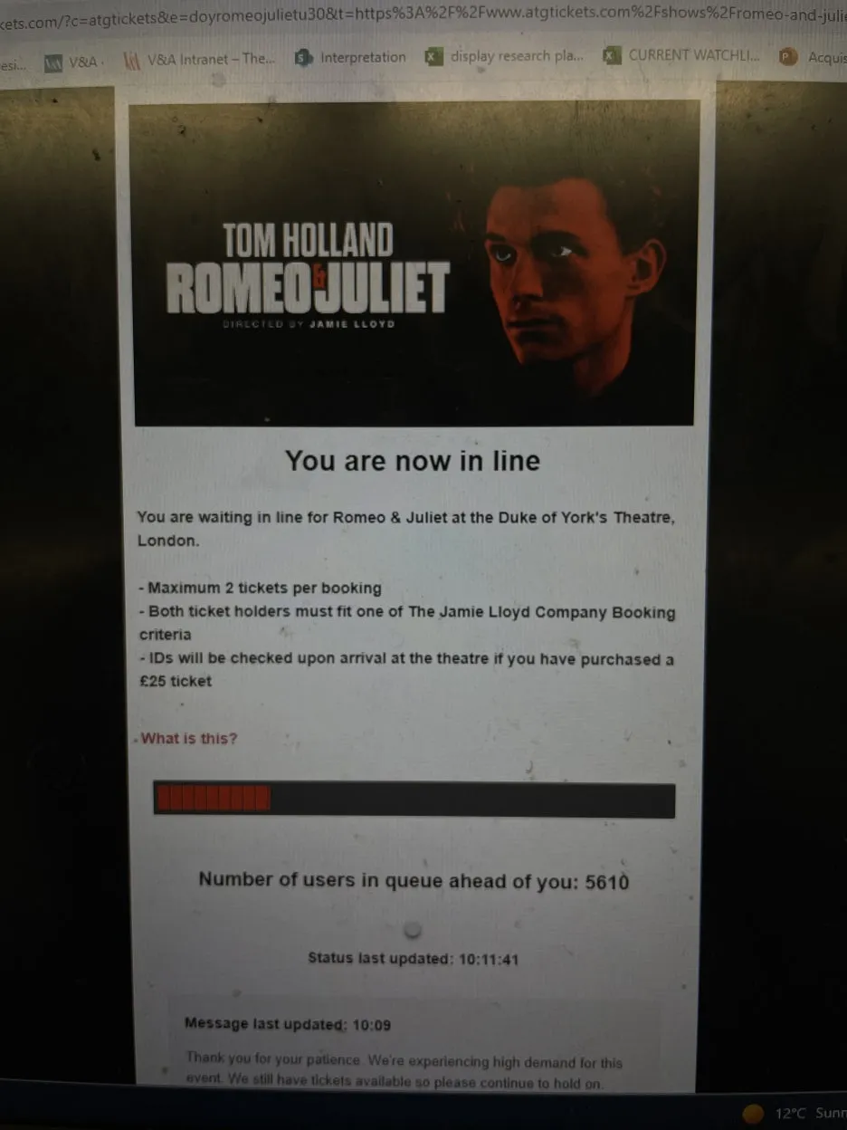 톰 홀랜드가 출연하는 연극 로미오와 줄리엣의 티켓팅은 장렬히 실패했다.