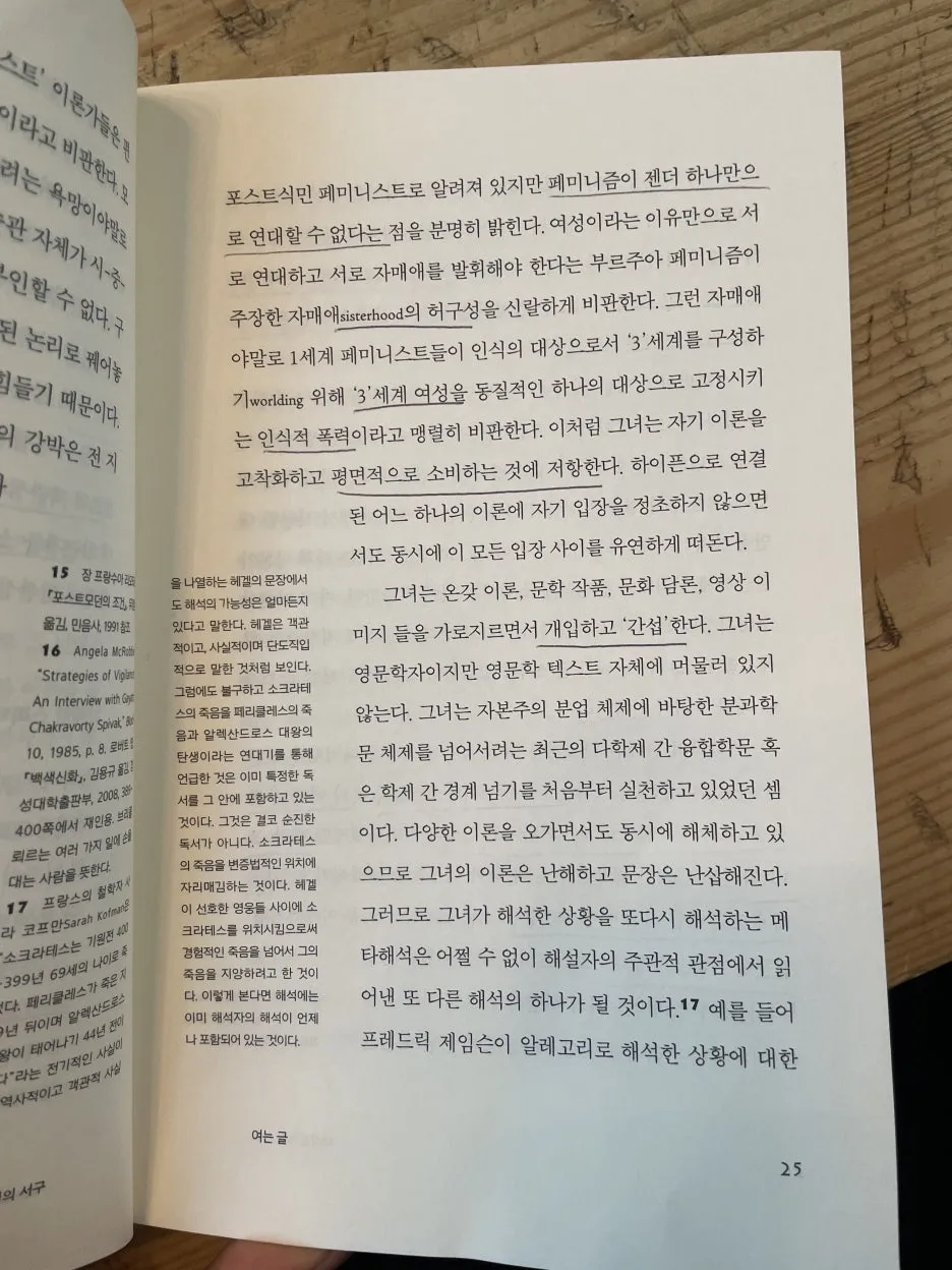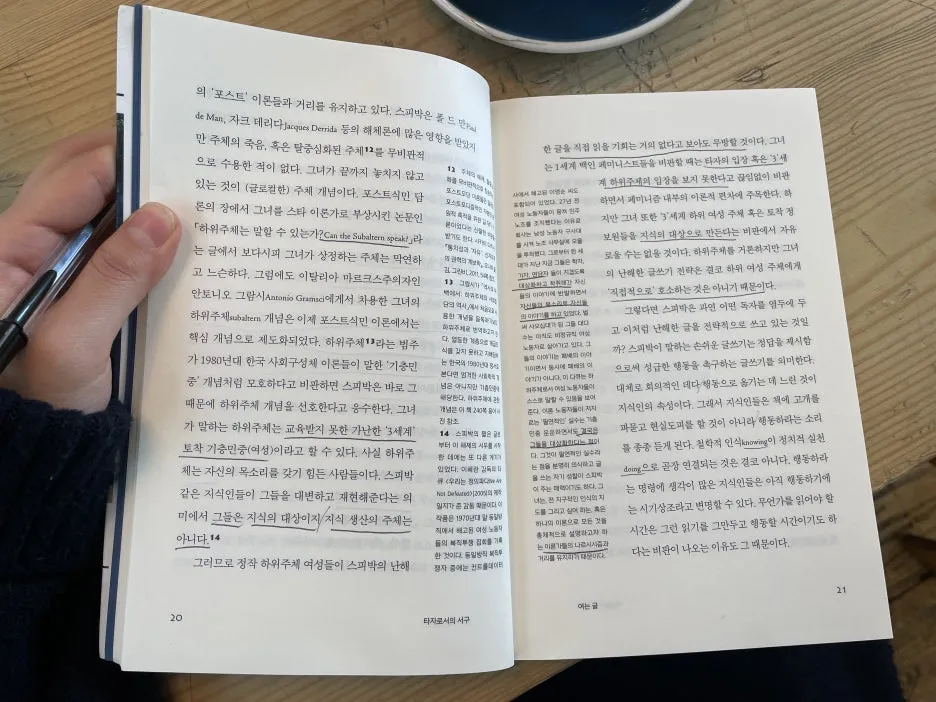가야트리 스피박. 석사 할 때 과제로 주어졌을 때는 안읽었으면서 졸업하고 나서 일할 때는 괜히 읽고 싶은 책들. 일할 때는 공부하고 싶고 공부할 때는 일하고 싶은 청개구리 같은 마음이니까.