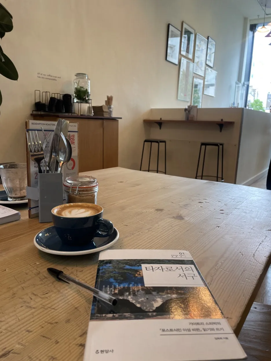 전시 보고 나서는 코벤트 가든 쪽 리뎀션 커피에서 독서랑 커피.