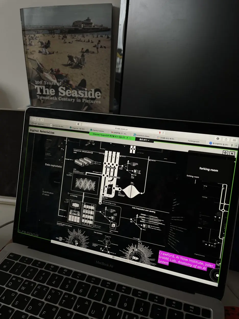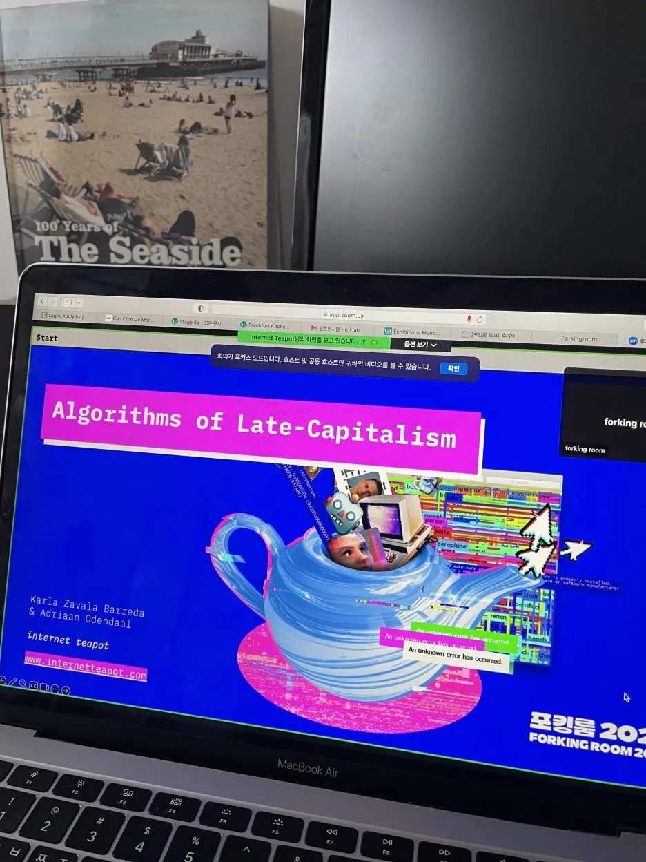 이날 아침도 포킹룸 세미나. 후기 자본주의 알고리즘 Algorithms of Late-Capitalism 인터넷 티팟(칼라 자발라, 아드리안 오덴달) / Internet Teapot (Karla Zavala, Adriaan Odendaal).