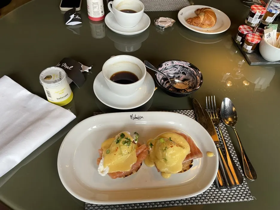 호텔 식사가 너무 좋았다. 뷔페 식도 있고 브런치 메뉴를 개인적으로 주문해도 되고. 그렇게 아침부터 동료들 만나서 같이 아침 먹고