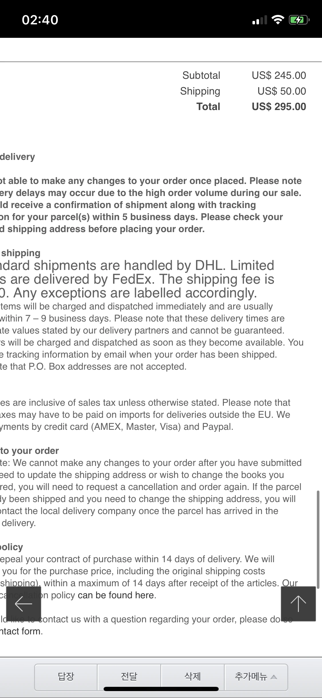 295달러. 갑자기 책 40만원 치 결제. 새벽엔 어휴 정말 뭐든 하면 안돼......