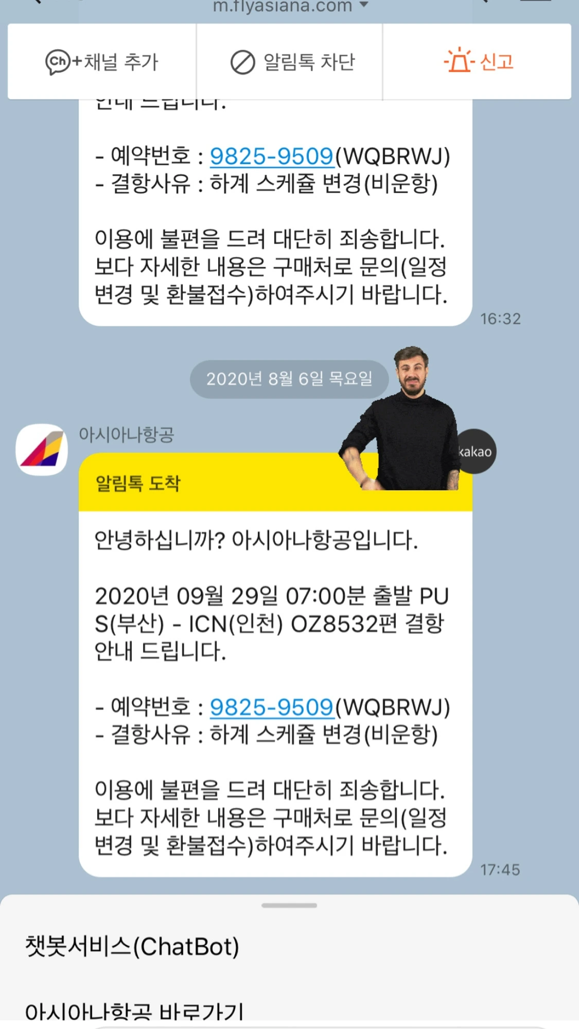 다시 뒤져서 루프트 한자로 결제했으나 이 마저도 운항 스케줄 변동 알람이.....
