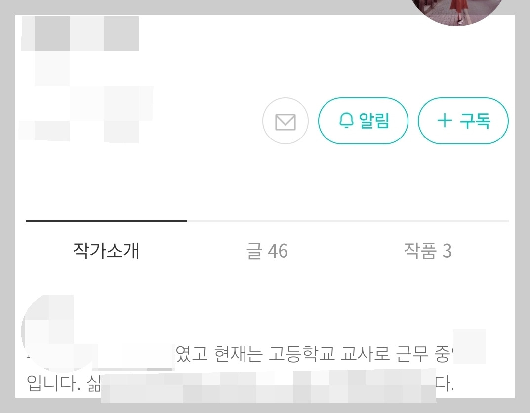 이곳 브런치에 계신 작가분의 글을 보도록 하자. 사실인지는 모르겠지만, 본인 스스로는 고등학교 교사라고 소개하고 있다.