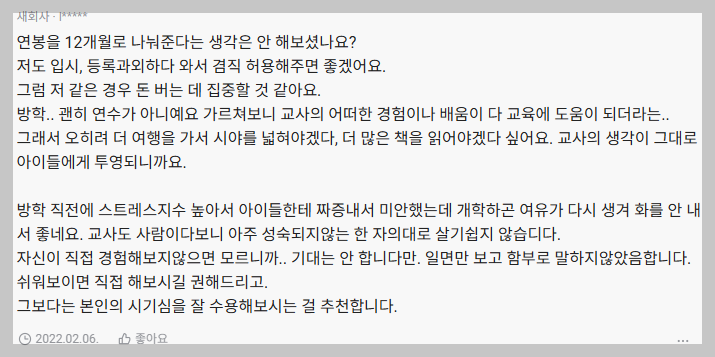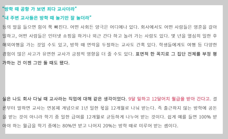 교원의 방학에 대한 이야기는 당분간 시리즈로 이어갈 생각이다.