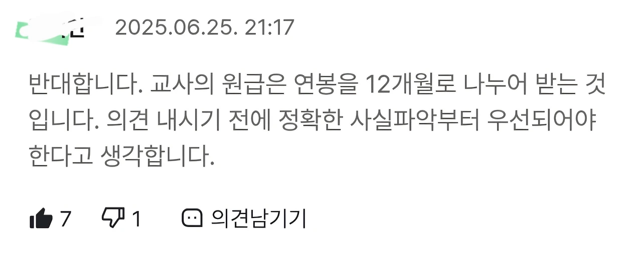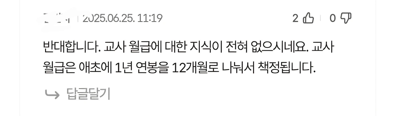 거의 8000개에 달하는 댓글 중에 7500개는 반대 댓글이었고, 그중 수 백개가 '교사는 12개월로 급여를 나누어 받는다'는 것이었습니다.