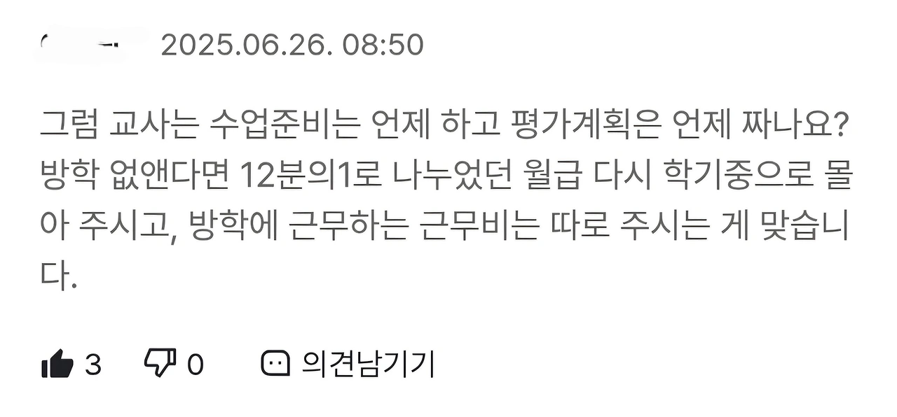 인터넷 커뮤니티에 교사들의 방학에 대한 이야기가 나오면 빠지지 않는 댓글들이 있습니다. 그중 하나는