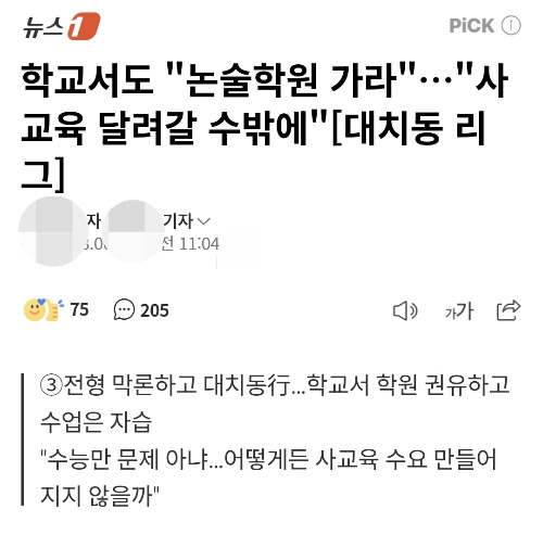 아이들은 더 이상 공교육에서 학력(academic ability)을 기대하지 않습니다. 공교육 스스로도 학력제공을 사교육에 외주를 준 모양새입니다.