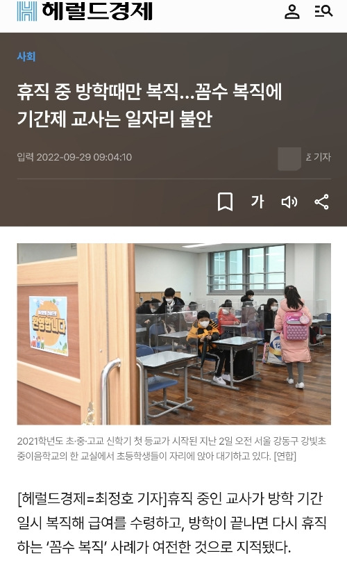 직업윤리는 물론이고, 기간제교사의 피해까지 생각한다면 인성마저 의심되는 일인데, 이 짓이 꿀팁이라며 서로 정보를 나누는 모습까지 보고 있노라면 참...
