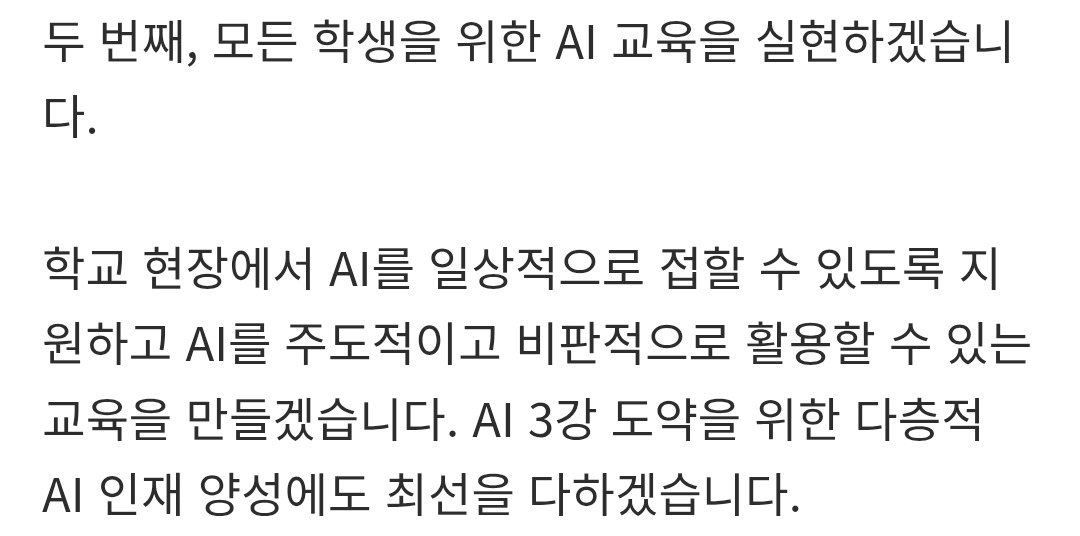 AI 교육이라는 것이 아마도 'AI를 잘 활용하는 것'이 아닐까 하는데 (AI개발은 극도로 높은 기술적 업무이므로 대학 이상에서나 '교육'할 수 있다)