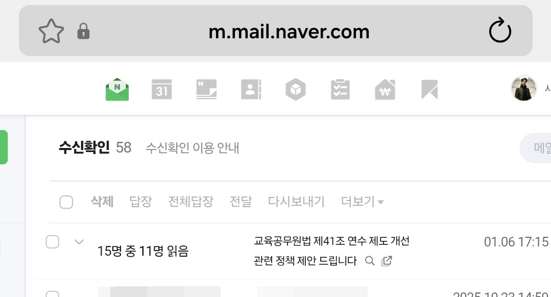 며칠이 지났는데 아직 메일을 보지 않으시는 의원 분들이 4명이나 계셔서 좀 놀랐는데요, 아마 메일보다는 카톡, 문자 사용이 더 많은 문화 때문이겠지요.