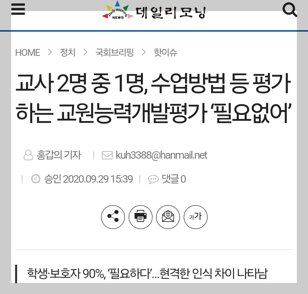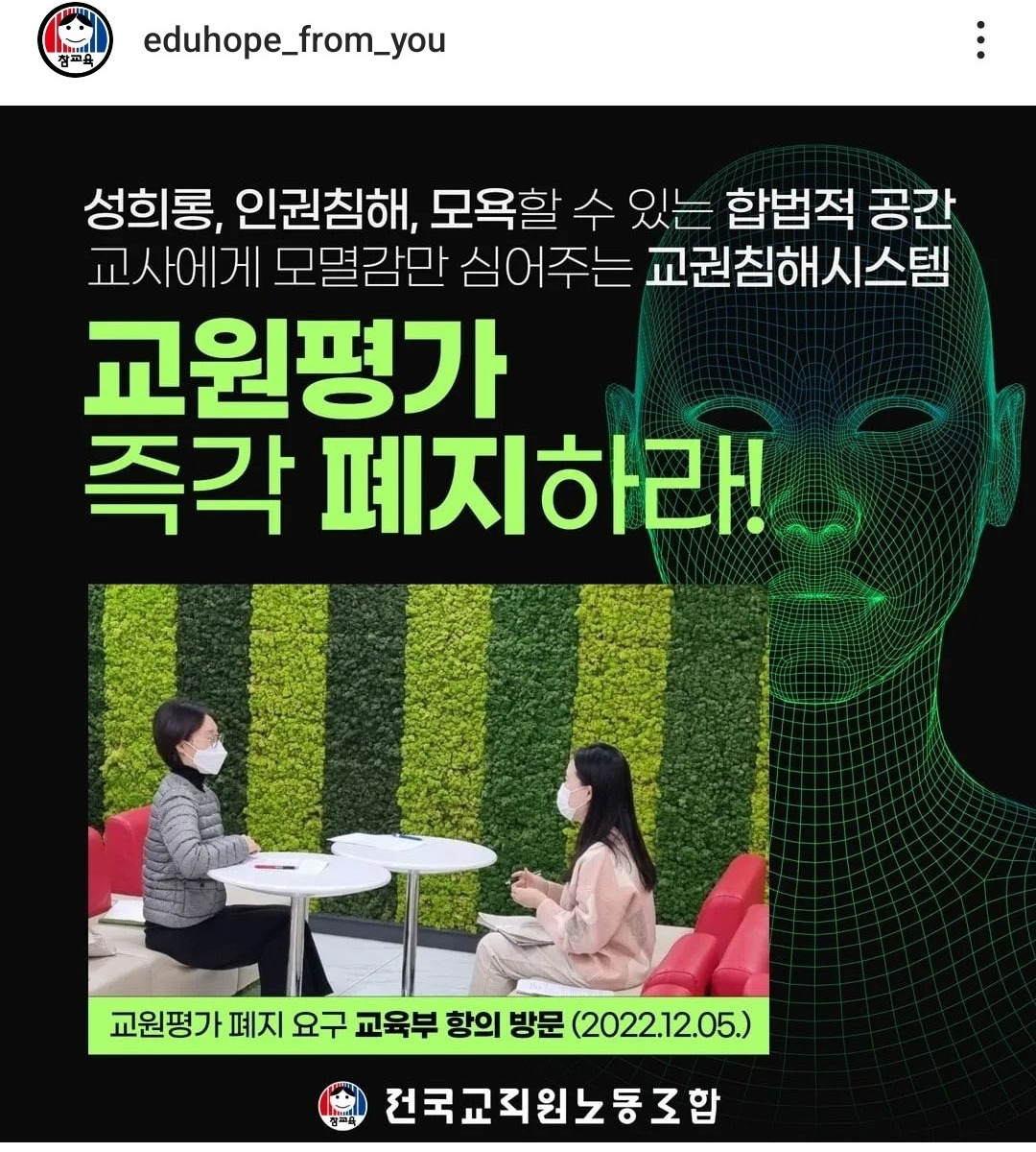 그런데, 이해할 수 없는 것은 교사들이 '평가'를 거부한다는 것이다. 평가에 항의할 수는 있는데, 평가 자체를 거부하는 건 좀 이상하다는 게 내 생각이다.