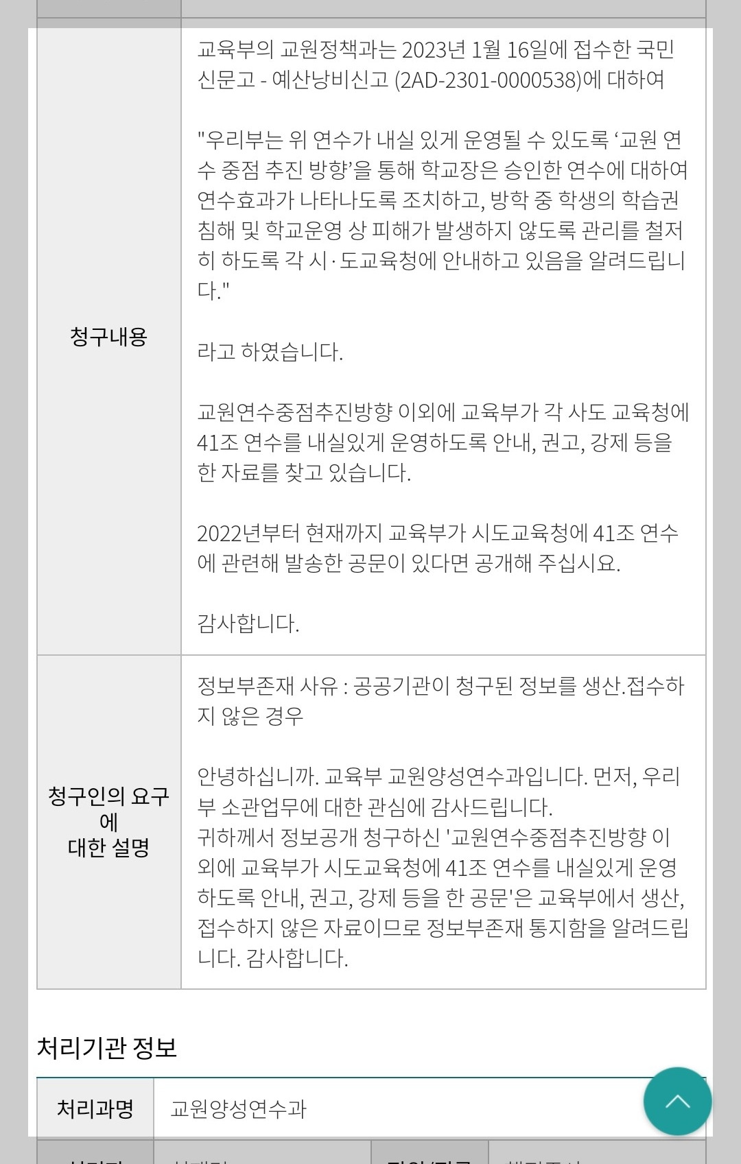 혹시나 싶어 부연하자면, '과도한 행정업무와 잡무 등으로 수업연구나 역량강화를 꾀할 수 없다'는 주장은 교사 대다수가 '바빠서' 41조 연수조차 사용할 수 없을 때나 가능한 것이다.