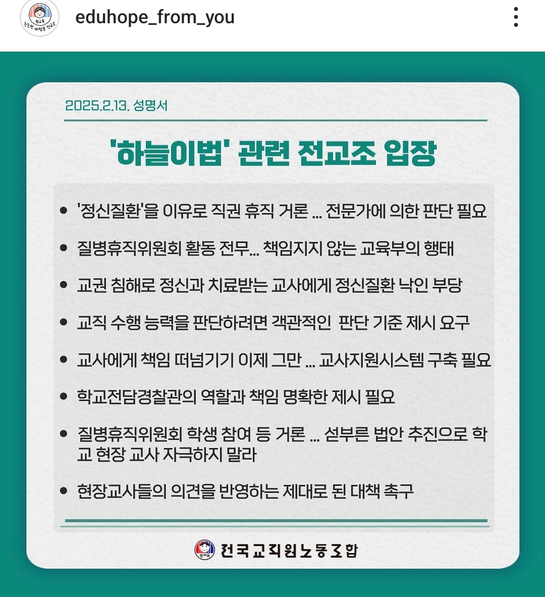 교사들에게 유리할 상황이나 사건(서이초 사건과 같은)이 일어나면 교사집단은 '뭉친다'