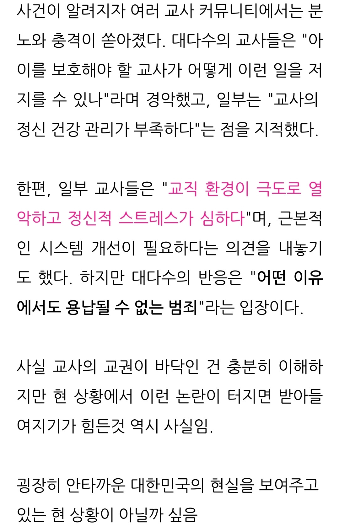 얼마 전 한 교사가 8살 학생을 고의로 살해한 안타까운 사건이 있었는데, 많은 사람들이 경악하고 분노하는 와중에 나는 짜증이 났다.