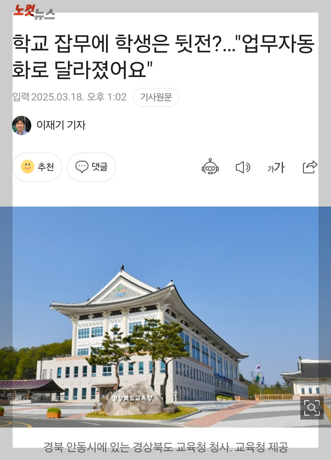 먼저 해당기사의 제목은 "학교 잡무에 학생은 뒷전?"이란 표현이 들어 있다.