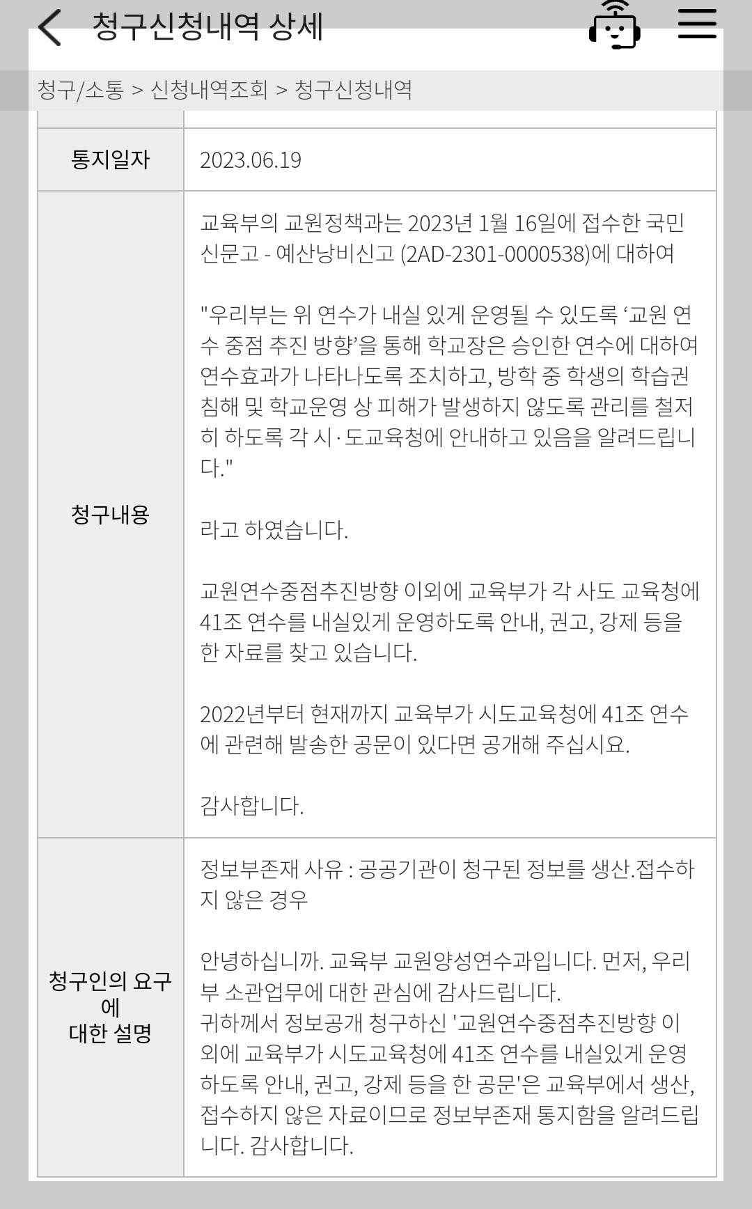 교육부는 이 41조 연수를 사용함에 있어 '휴식의 목적으로 사용하지 말 것'을 명시하고 있으나, 맨 위쪽부터 말단까지 '교사'와 '교사 친화적인 사람'으로 구성된 교육부는 실제로 이 부분을 관리한 적도 없다