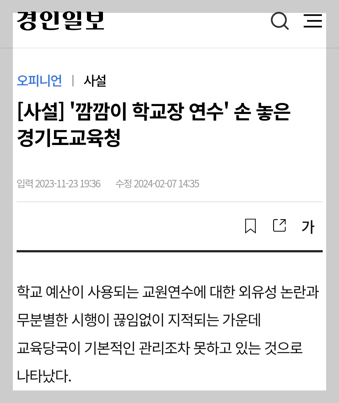 외유성 연수로 대표되는 교육청의 '눈먼 돈'은 한두 가지가 아니며, 교원들의 기본급인 호봉체계 또한 비상식적이다.