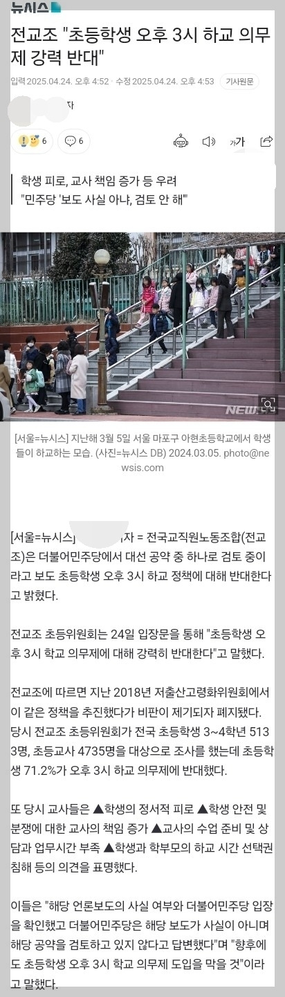 교사의 입장에서, 초등학생의 오후 3시 하교를 반대한다는 것이다.