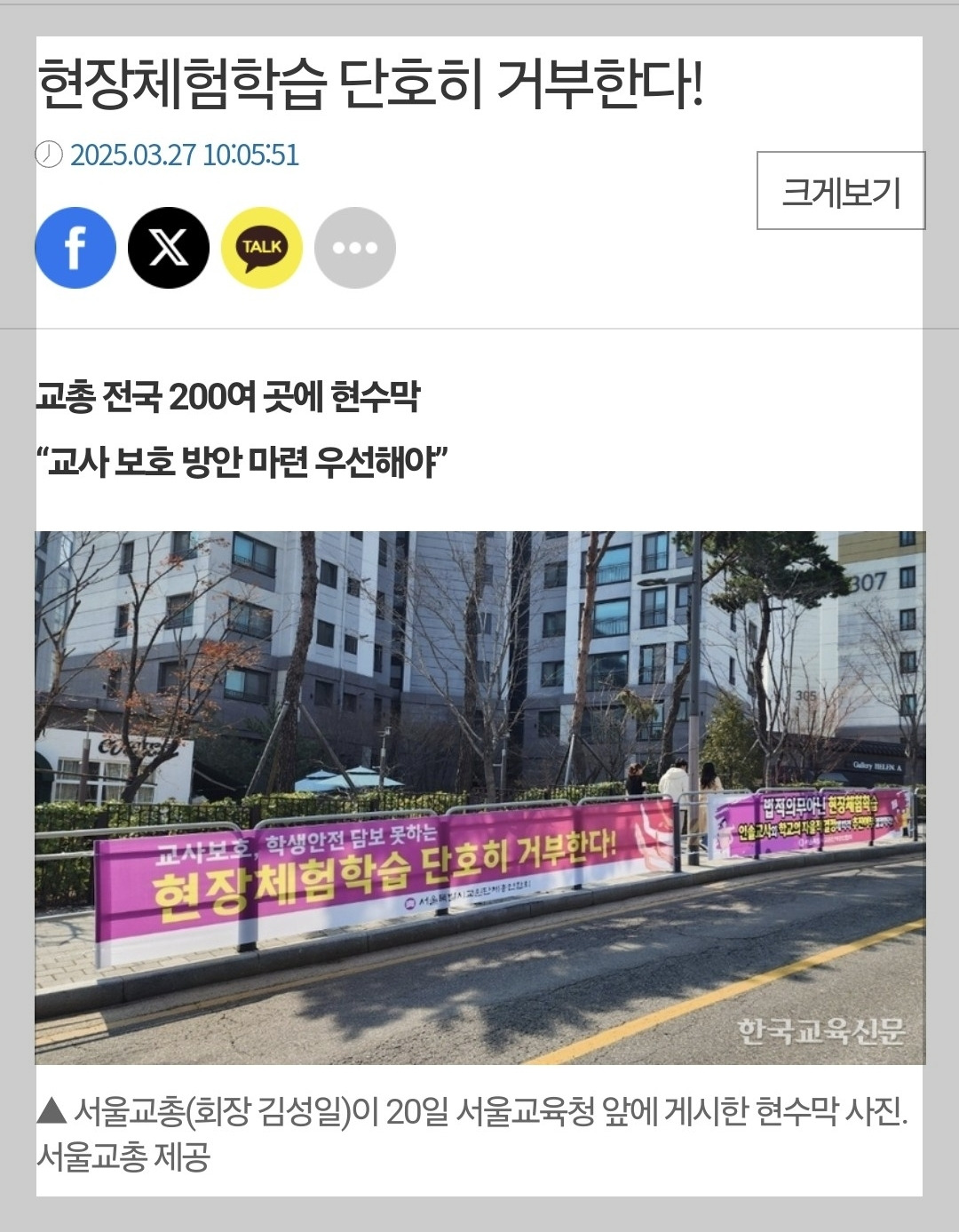 교사단체는 이 사건을 계기로 '현장체험학습을 거부할 명분'을 얻는 것에 집중한 것으로 보이는데, 여러분은 어떤지 모르겠다.