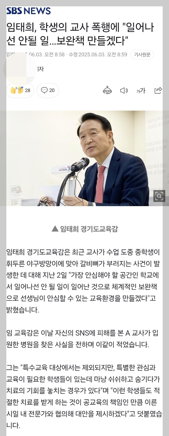 하지만 야구배트로 교사를 폭행했다는 자극적인 기사 아래, 가해자의 동기는 찾아볼 수 없다. 기사에서는 애매하게 '이런 학생들도 적절한 치료를 받게 하는 것이...'라는 교육감의 워딩을 실으며, 가해학생을 이해할 수 없는 괴물 취급을 하고 있다.