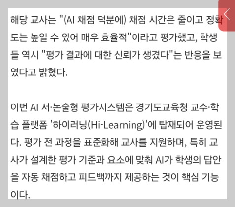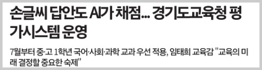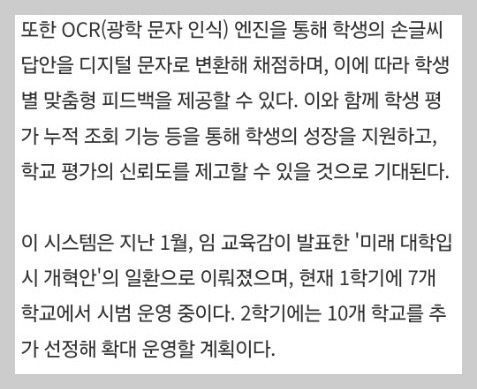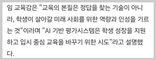 그런데 웃기는 것. AI 평가시스템이 교육의 본질과 관계가 없는데도 불구하고 '교육의 본질'을 운운하고 바로 이어서 AI 평가시스템을 언급하여