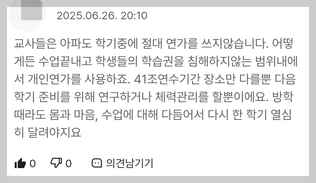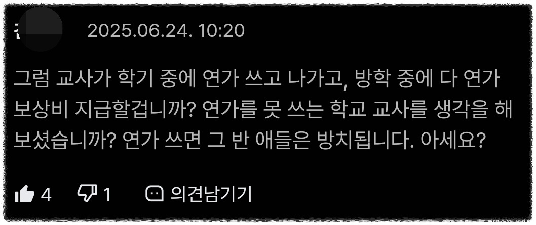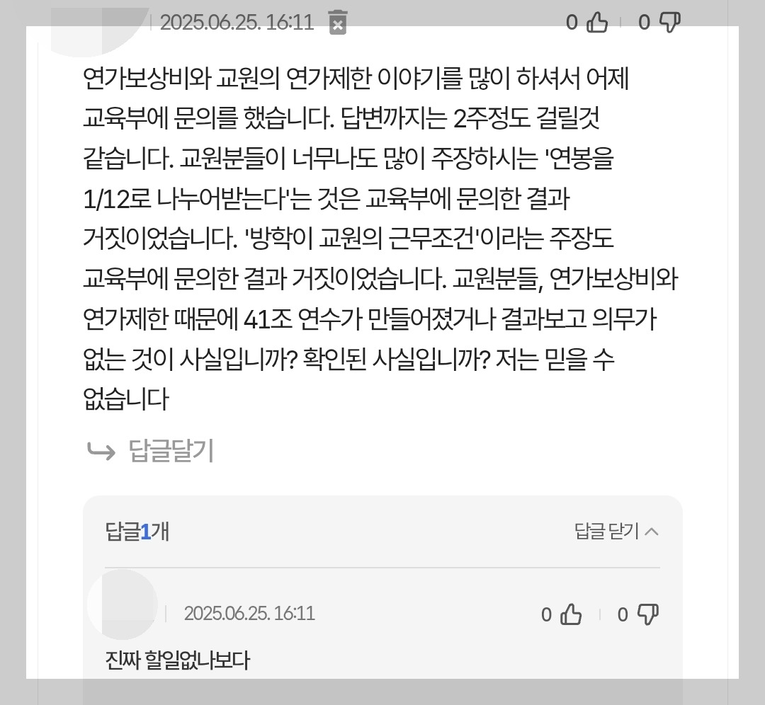 제가 이제껏 쌓아온 자료로 반박을 하자 어떤 분은 짤막하게 소회를 남기셨는데, 전체적인 교원의 태도를 대표하는 것 같기도 해서 소개합니다.