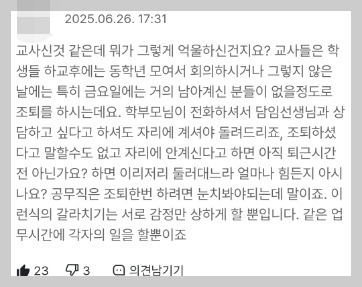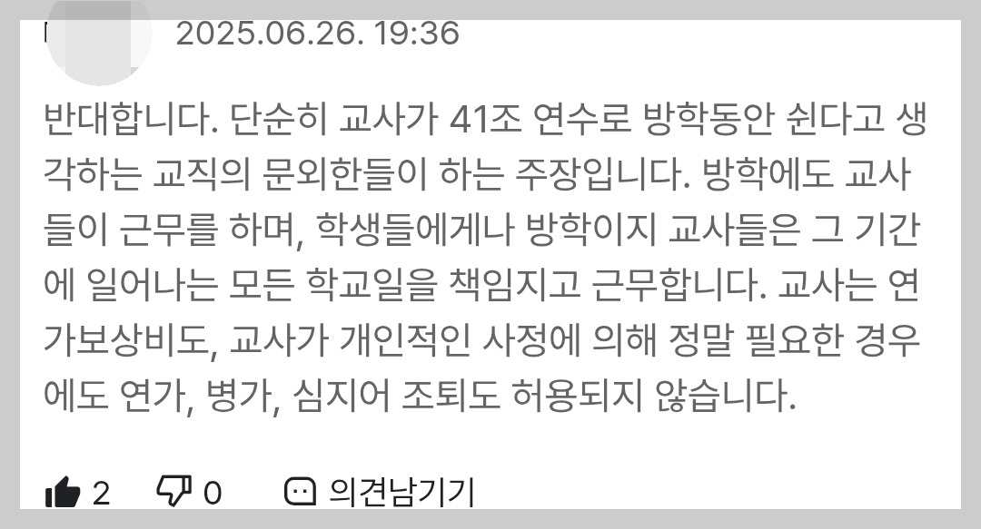 위에 언급한 교사노조의 대응은 '대부분의 교원이 연가를 소진하고, 병가 비율도 상당해야' 나올 수 있는 반응이라고 생각하기 때문입니다. 여러분은 어떠신지 모르겠습니다.