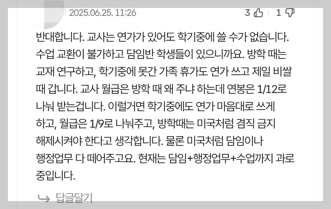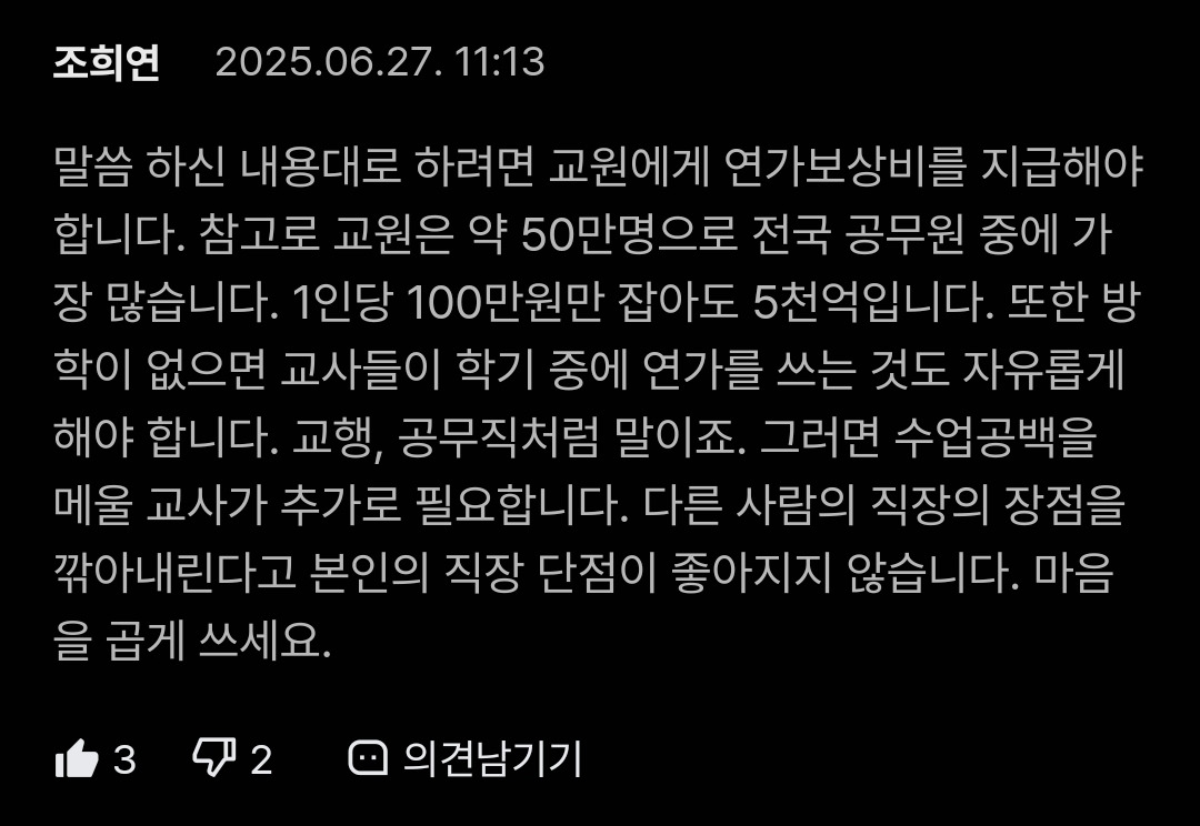 결론이요? 저는 교원들이 학기 중 연가, 병가를 마음대로 쓴다고 생각합니다.