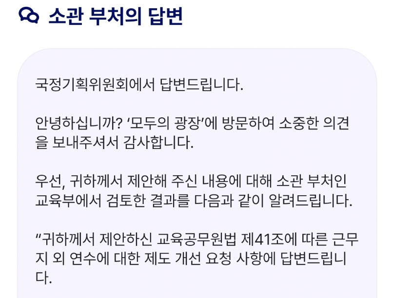 41조 연수를 개정 또는 폐지하자는 국민제안에 국정기획위원회의 답변이 달렸습니다.