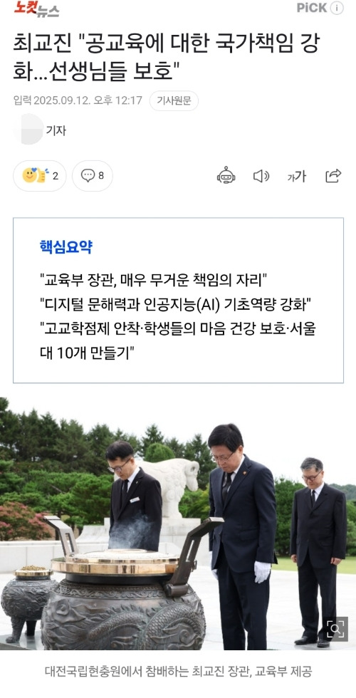 최교진 교육부장관에 대한 기사를 또 접하게 되었다.