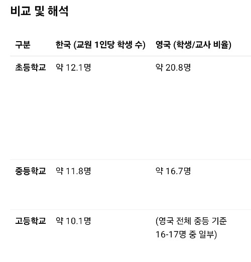 크~! 과연 교육선진국답다! (교원의 능력은 영국이 우리나라보다 훨씬 높다고 조사되었다. 우리나라는 OECD기준으로 교원의 능력이 평균에 못 미치는 수준이다)