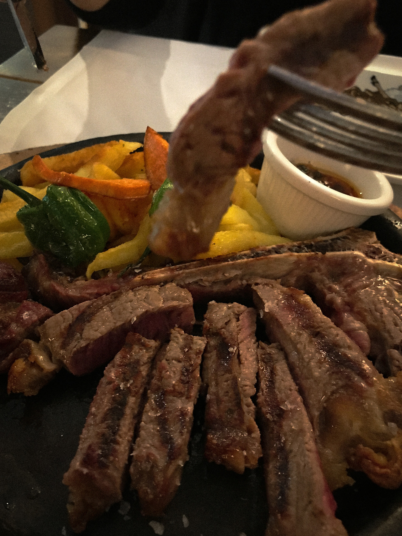 티본스테이크와 그라탕, 그리고 과일이 듬뿍 들어간 샹그리아 와인. 우리의 첫 유럽여행, 첫날 첫 식사다.