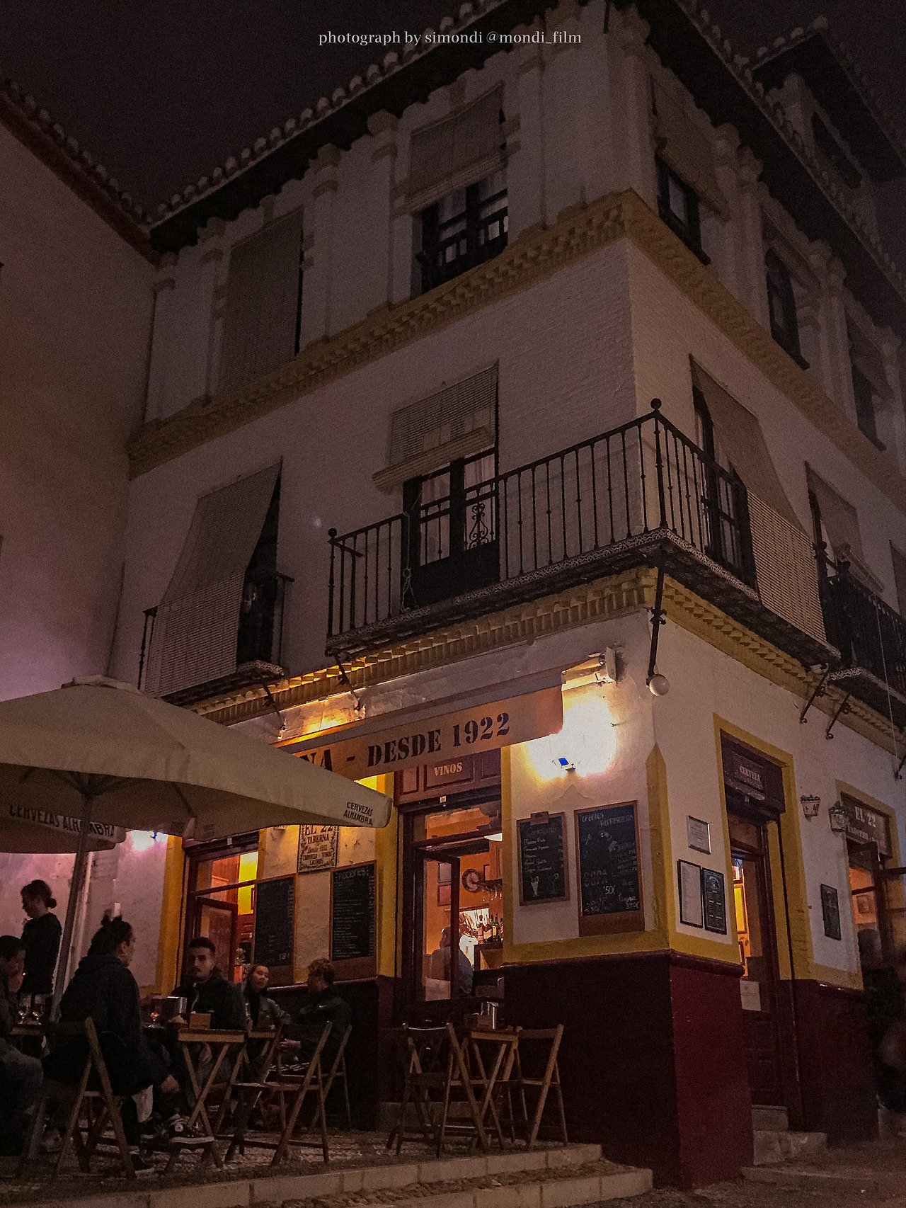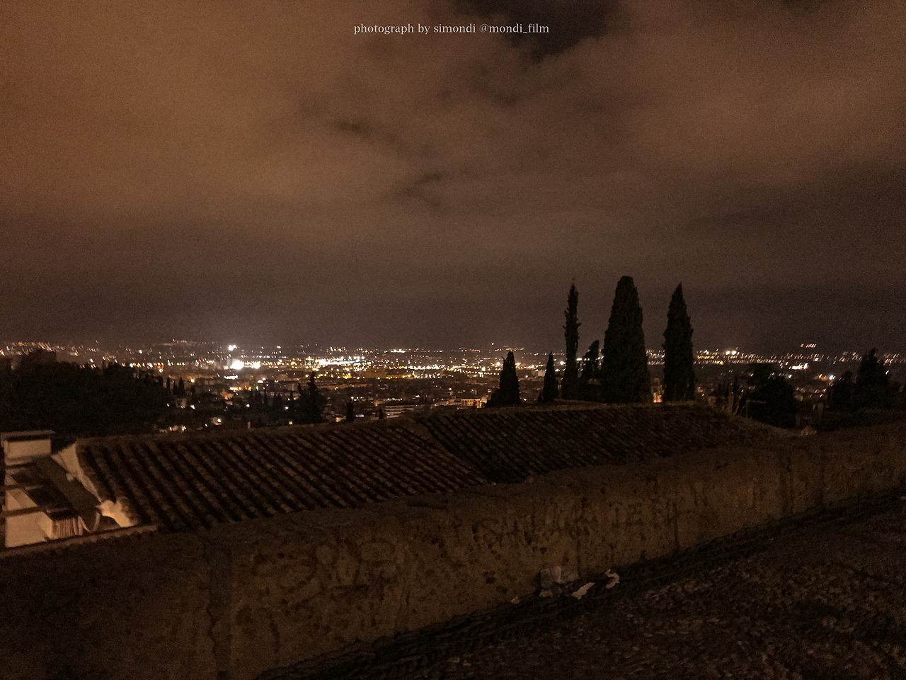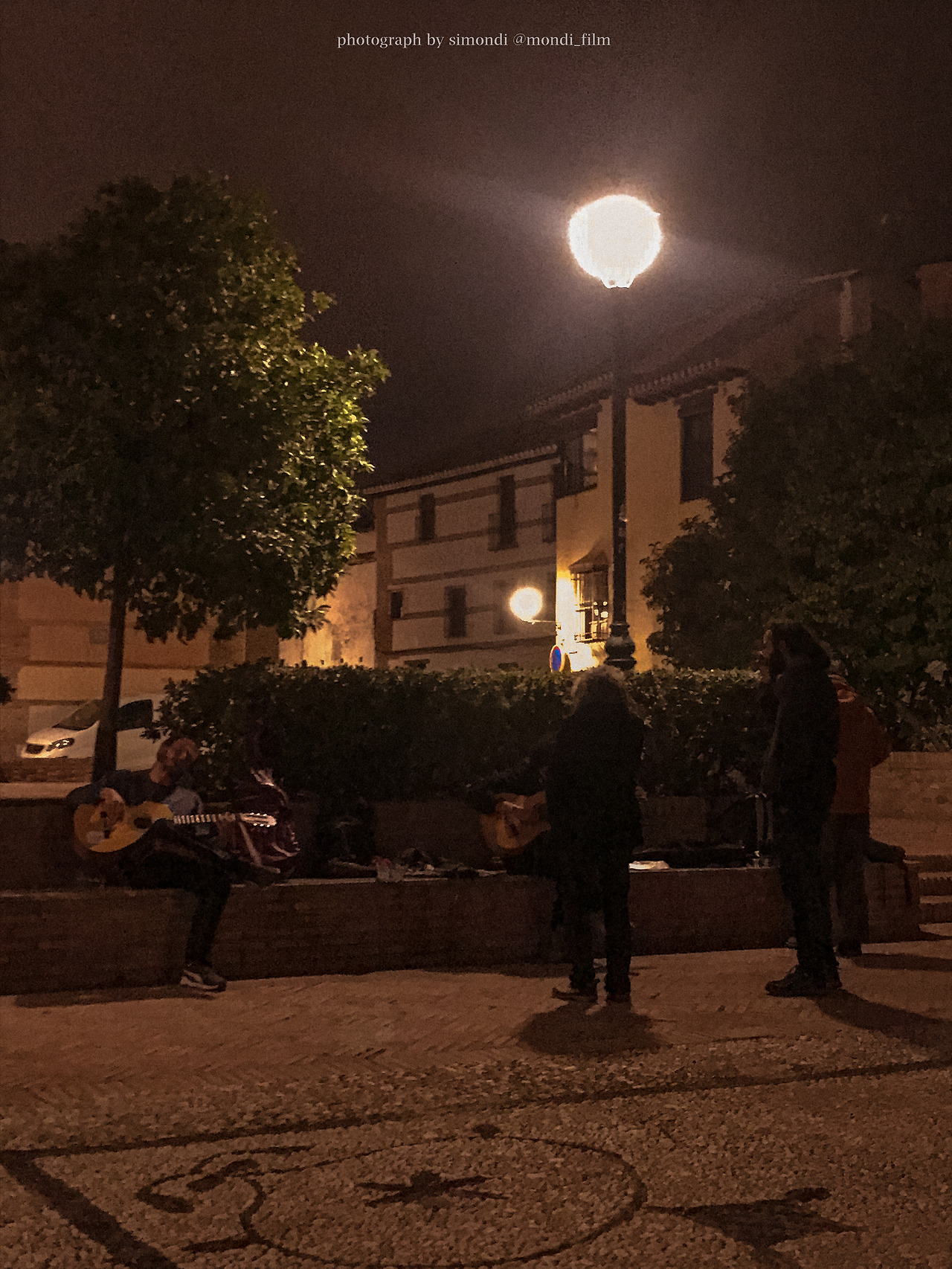 알람브라 궁전을 보기에 너무 멀지도 가깝지도 않은 거리. 노란 불빛을 따라 줄지어 앉아 있는 사람들. 그라나다는 정말 따뜻하고 낭만적인 도시다.