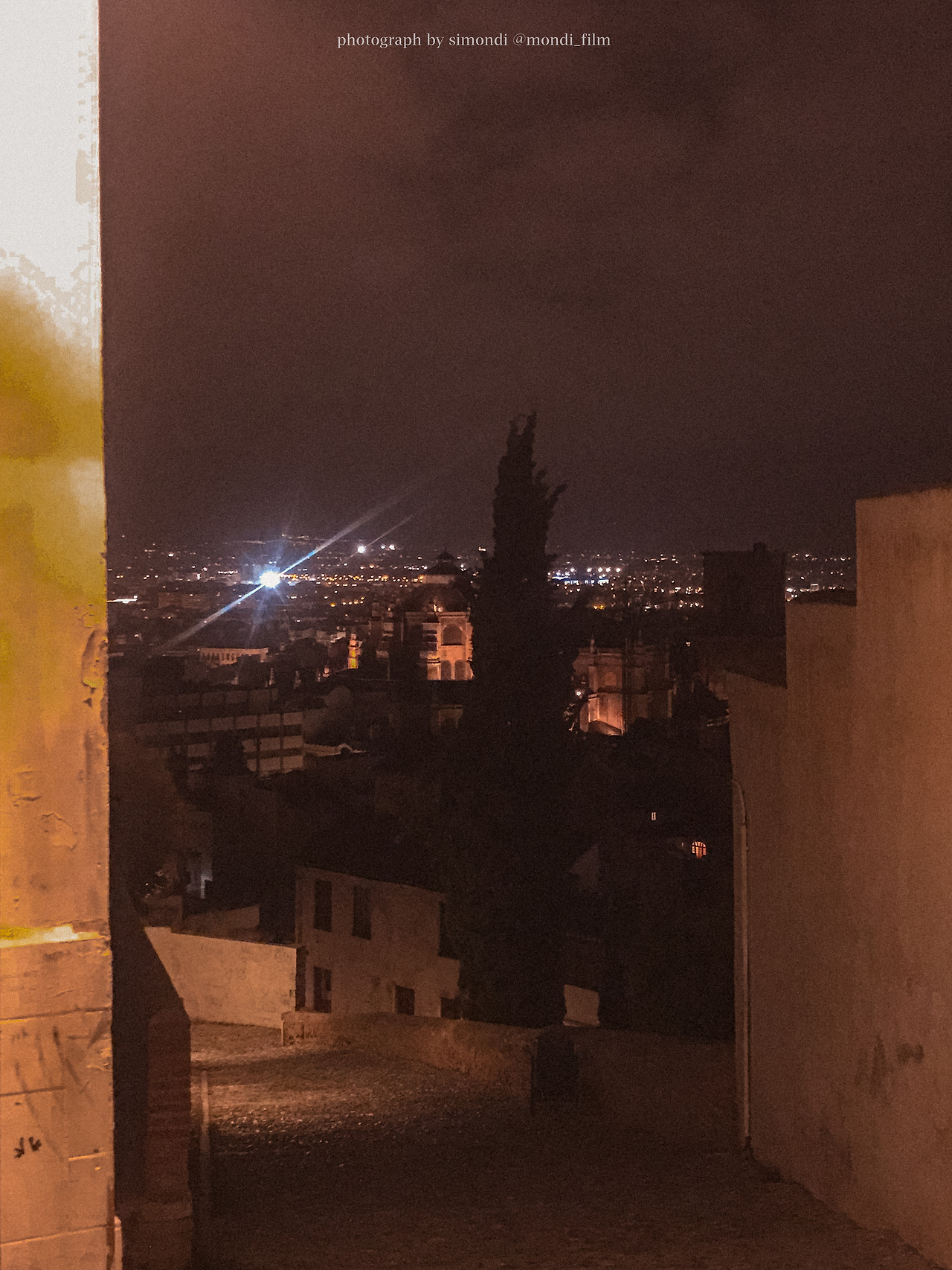 밤이 되어 노란 조명이 비추는 그라나다는 더 이쁘다.
