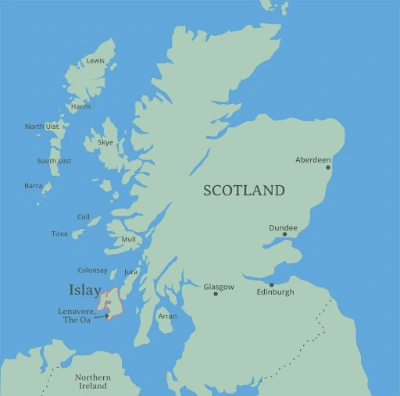 쥬라 Jura는 아일라 섬과 스코틀랜드 사이에 위치한 인구 150명의 아주 작은 섬이다. 아일라와 불과 오백 미터 밖에 떨어져 있지 않다. 지척 간이기는 하여도 바다에 가로막힌 별개의 섬이므로 방문하려면 페리를 타고 건너야 한다. 글라스고우에서 조그마한 프로펠러 비행기로 일단 아일라로 갔다가 다시 배에 올라야 하는 외진 곳이다. 당시 아일라섬에는 증류소가 7개 있었으나 쥬라섬에는 쥬라가 유일하다. 거기에다 펍 하나, 식료품점 하나가 섬주민의 생활 본거지이다. 이 섬에는 아일라와 달리 관광객도 거의 없다. 소설 ‘1984’의 저자인 조지 오웰이 머물며 창작 활동을 했다는 정도가 몇 안 되는 자랑거리이다.